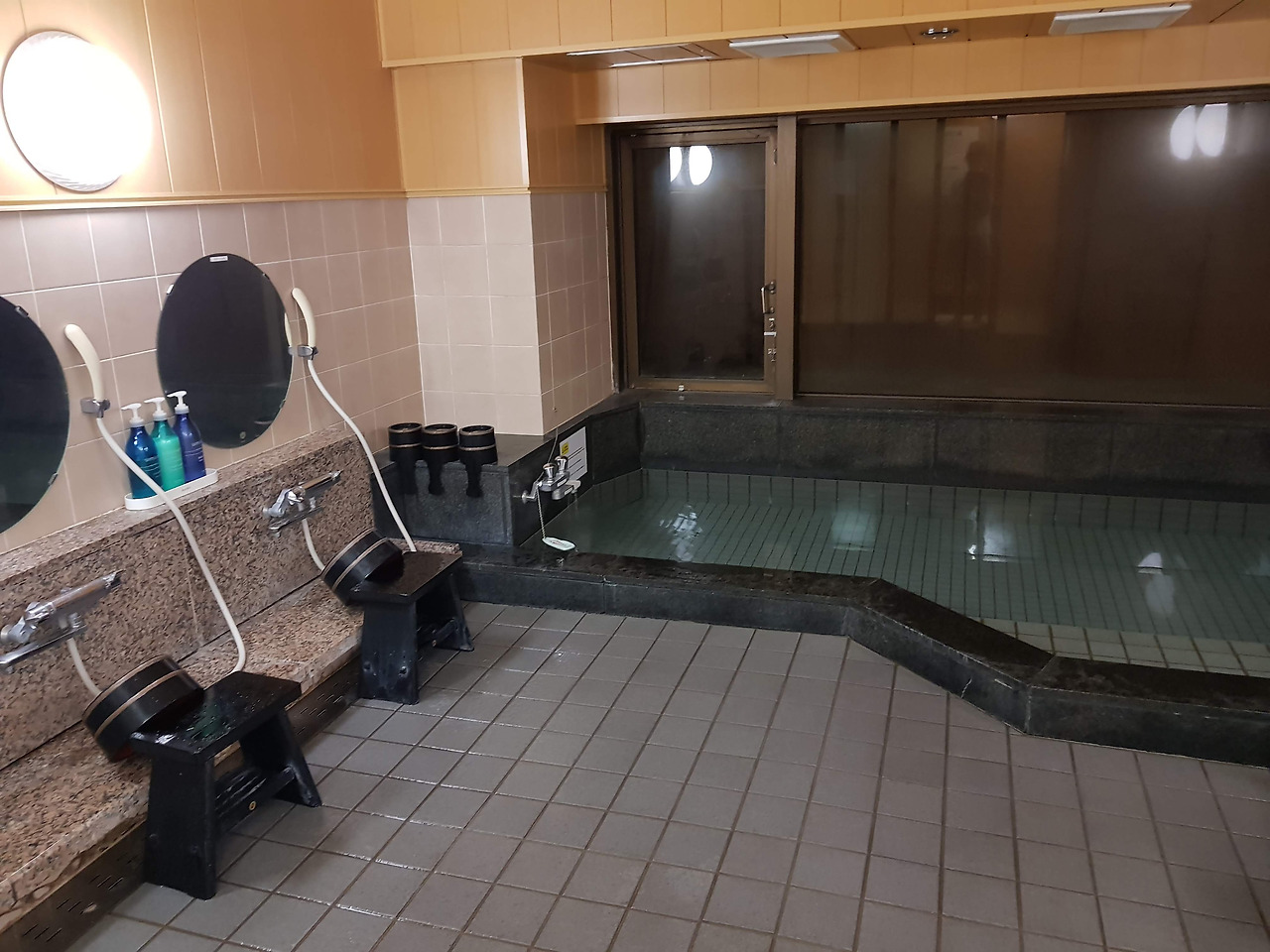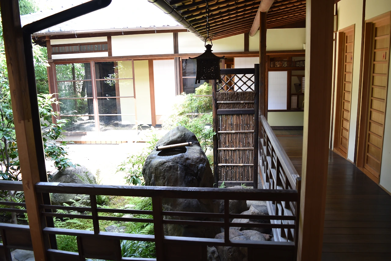 넓은 다다미방에 지하에 있는 목욕탕이 황송하고