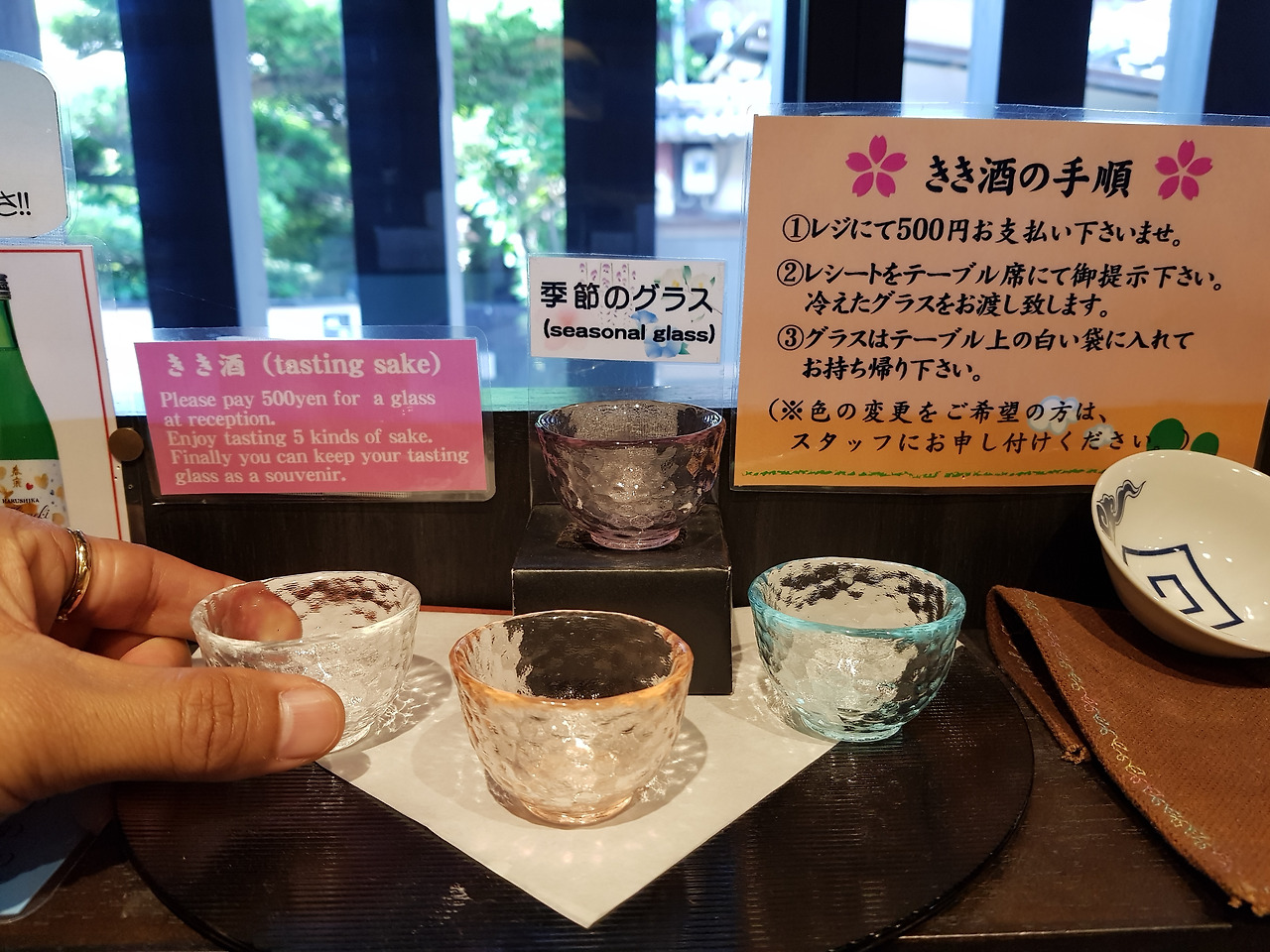 500엔을 내면 사케를 시음할 수 있는 잔을 주고