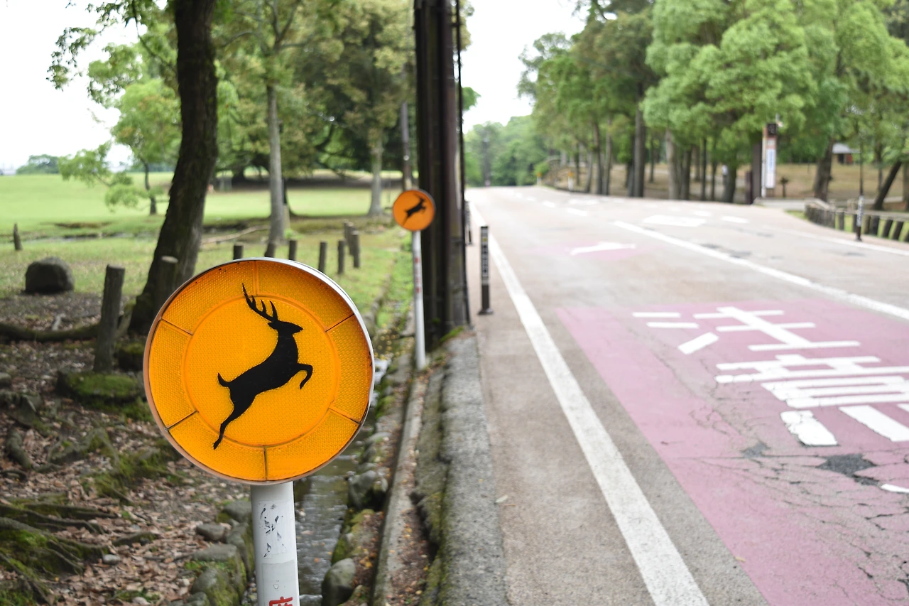 여기저기 사슴을 보호하라는 표지판과