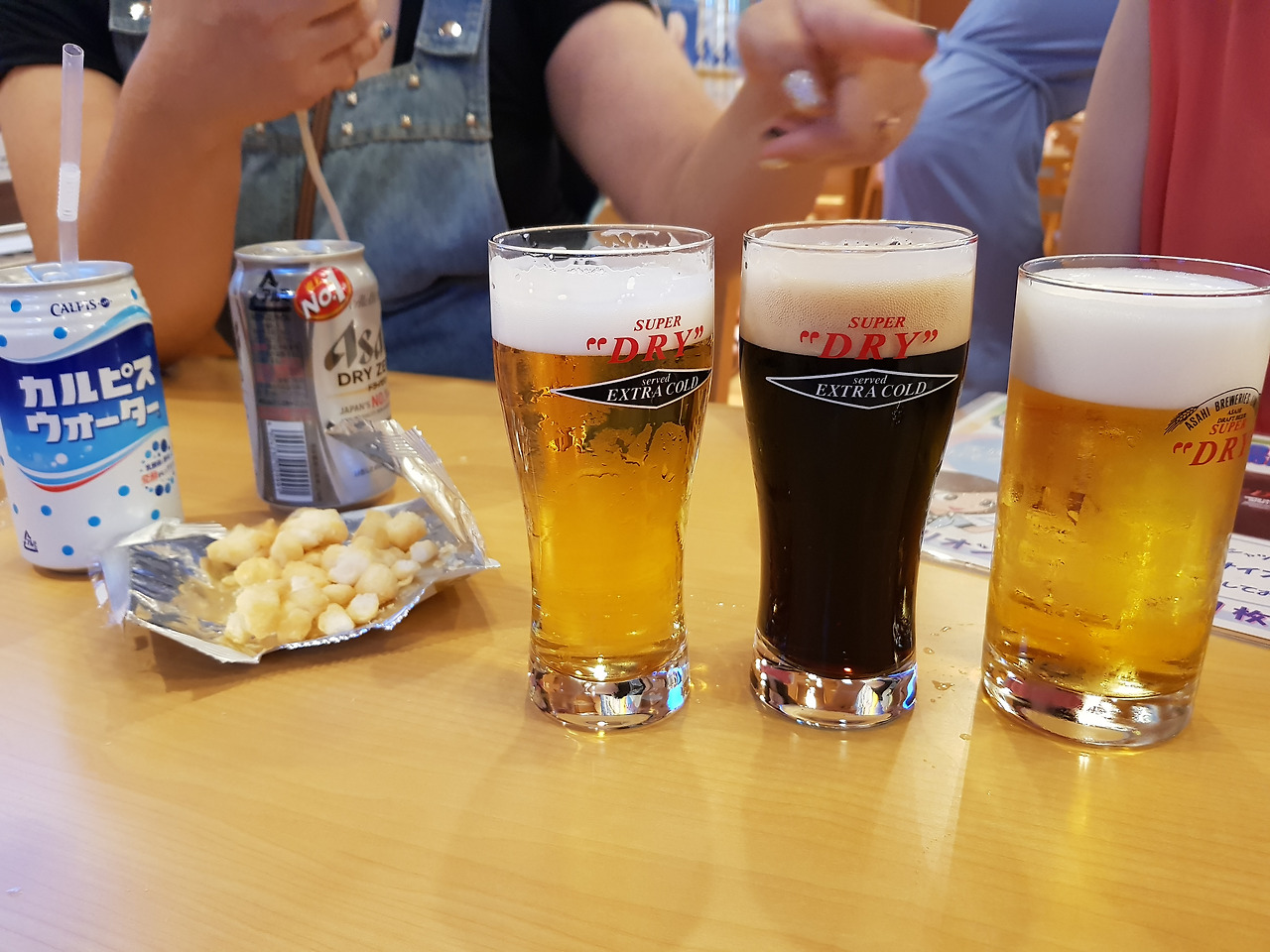 대신 아사히맥주공장에서는 무리해서 세 잔을 연거푸 원샷하고