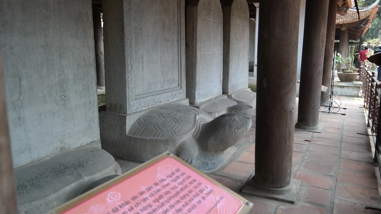 과거시험에 합격한 사람들의 이름이 거북이 등 위의 돌에 새겨져 있으며