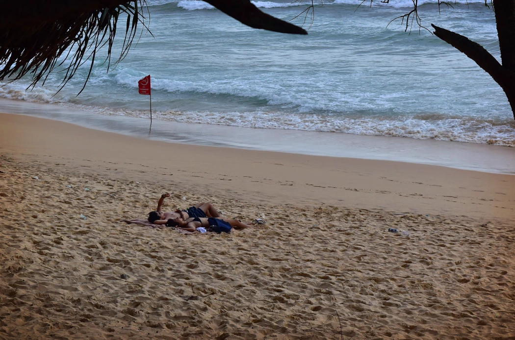 해변에 딱 달라붙어 누워