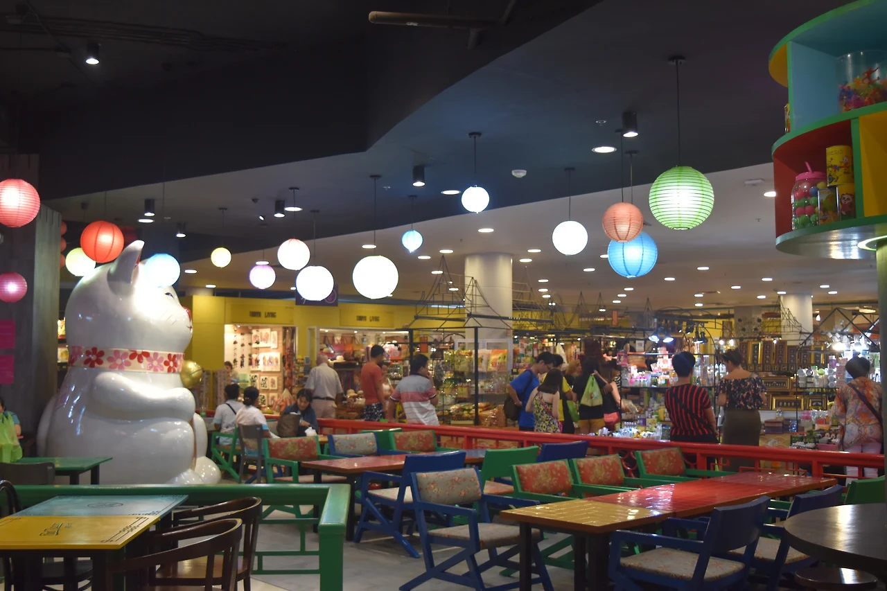 전세계의 프랜차이즈 레스토랑과 커피숍이 다 모여 있는 덫에 걸려있습니다