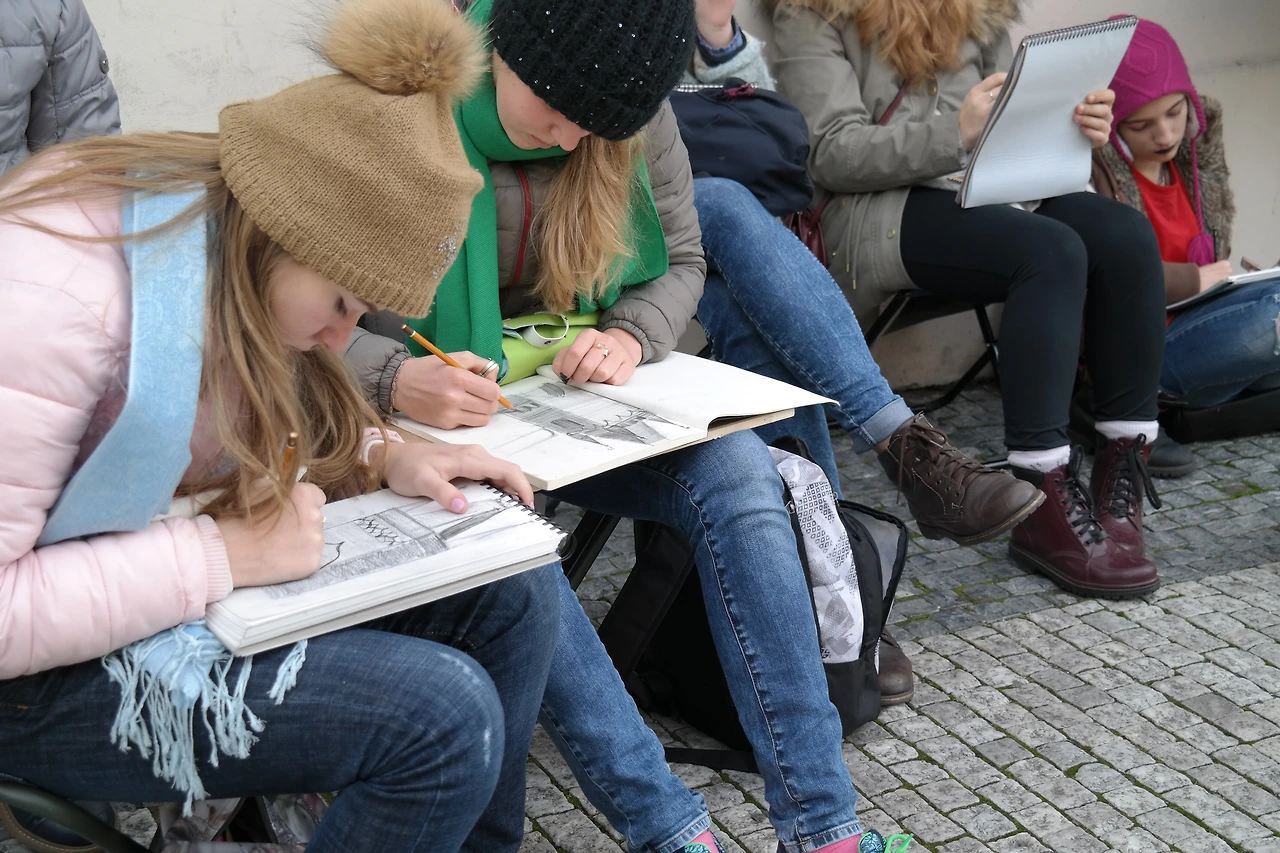 문화재를 스케치북에 담고 있는 학생들의 모습에 매료되어 한참을 지켜보다 말을 걸어 봅니다.