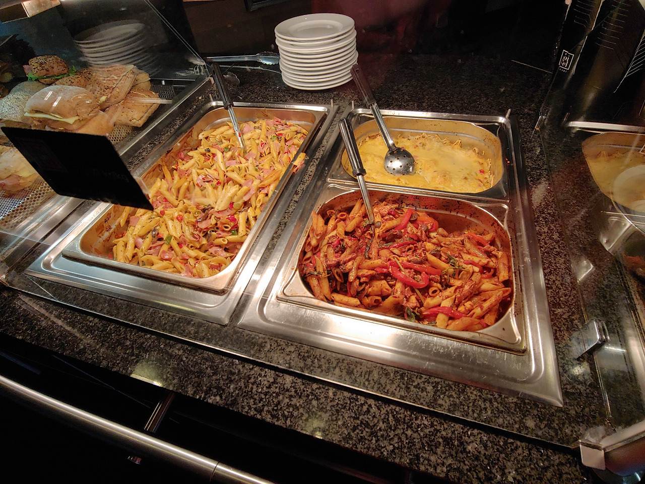 마트 옆에 있는 카페에 들어가 아침식사를 했다. 유럽 도시들을 여행하면 빵, 샌드위치, 파스타, 그리고 또 빵. 빵만 계속 만난다.