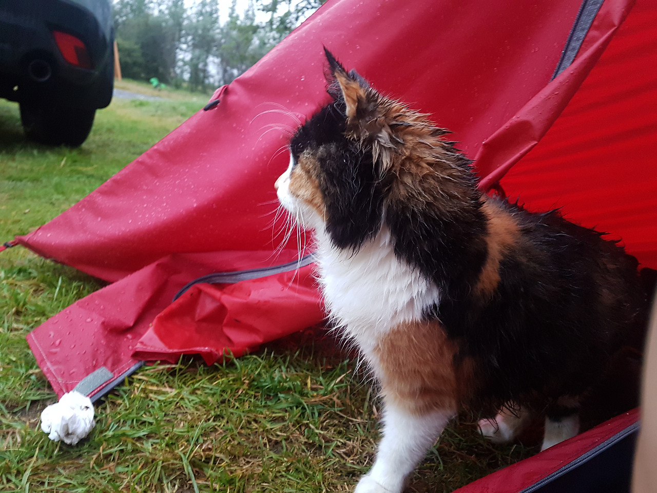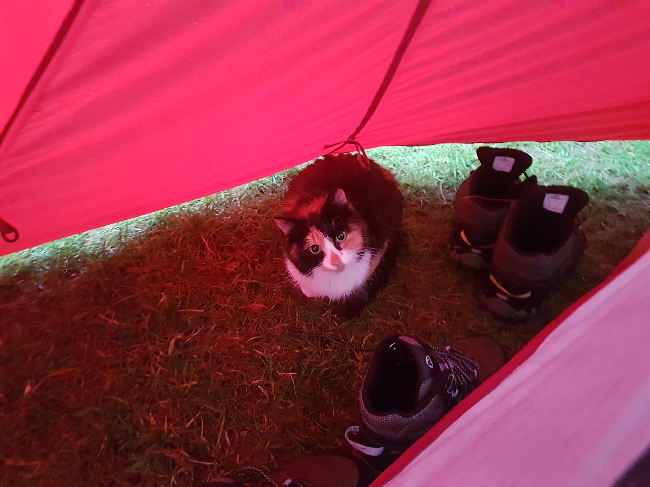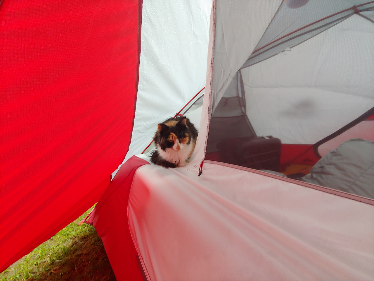 여행내내 밤에는 비가오고, 아침엔 개었다. 아늑한 피신처에서 투둑투둑 비오는소리를 듣고있으면 마음이 편안해지는게 우중캠핑의 매력이다. 어제만난 야옹님은 비를피해 우리집 현관에서 주무셨나보다. 차가운 바닥을 피해 캐리어 위에 올라가 꾸벅꾸벅 졸고있는 고양이가 안쓰럽다.
