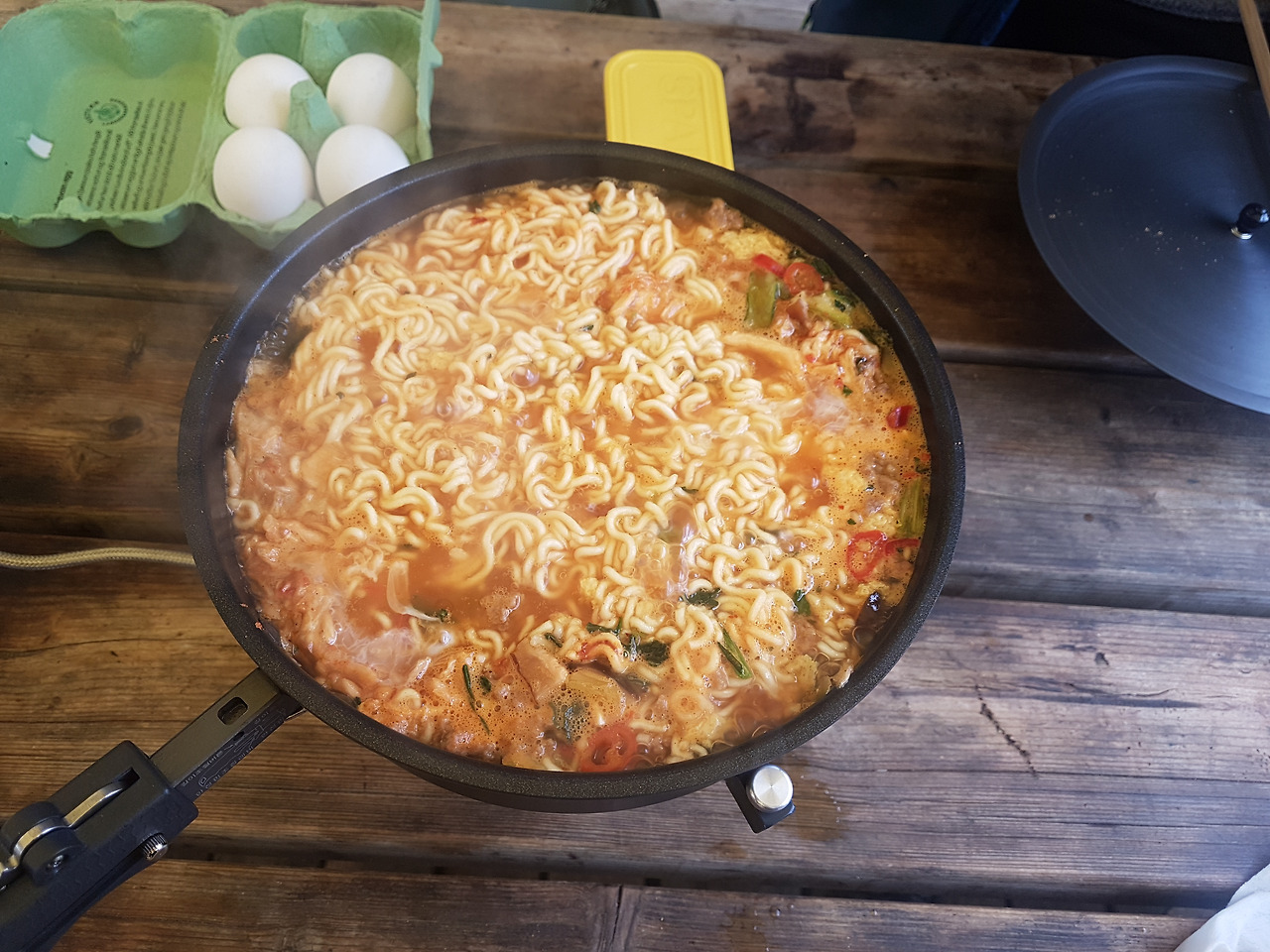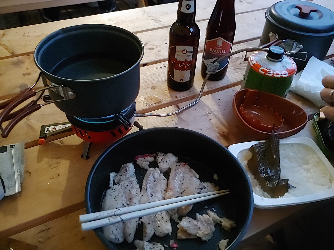 온천하고 씻고나니 또 배가고파서 마트에서 구입한 대구를 굽고 한국에서 가져온 찌개블럭을 하나 끓였다. 흔하디 흔한 생선구이인데 참 맛있다. 이날 이후로 별로 좋아하지 않던 대구탕도 잘먹는다.