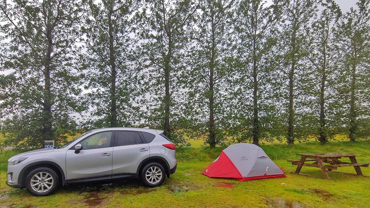 물웅덩이를 조심조심 건너 드디어 캠핑장에 도착했다.