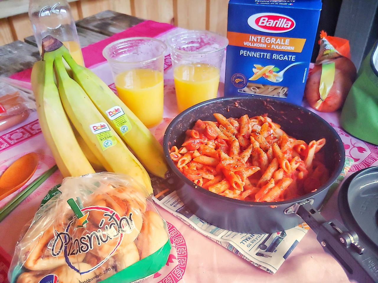 파스타와 맛있는 쥬스, 바나나와 빵. 호텔 조식 부럽지 않은 아침식사가 되었다. 다시생각해봐도 설레는 순간이다.