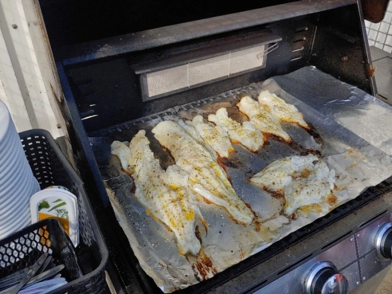 대구를 많이 낚으면 회로도 먹는다던데, 이날은 어획량이 좋지 않아 바비큐로 먹는다고 하였다.