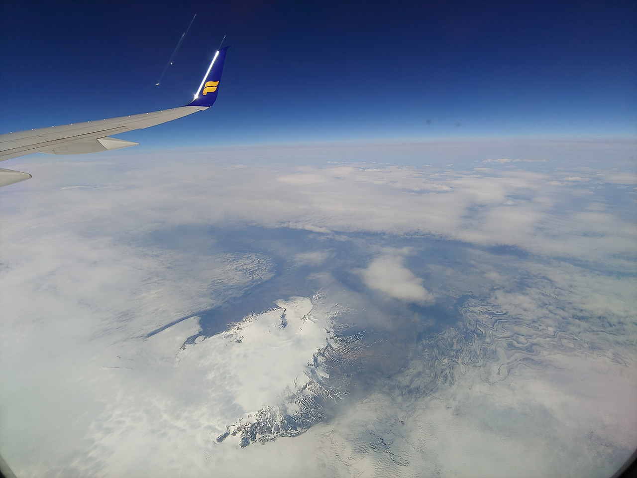 좁고 불편한 항공기는 마치 시간과 공간의 방 같았다. 언제 도착하나, 내리고 싶다 하며 괴로워하는데 힘들어하던 남편의 얼굴에 화색이 돈다. 창밖을 보니 아이슬란드가 보였다. 하늘 위에서 눈 덮인 산과 U자형 계곡을 내려다보니 내가 정말 'ICELAND'에 왔구나 하는 생각이 들었다.