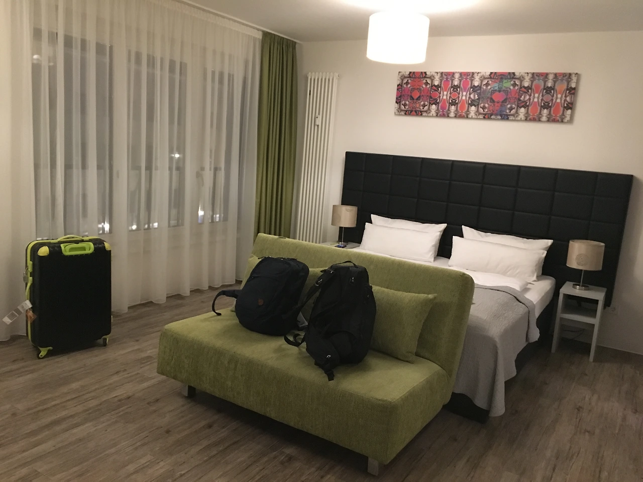 숙소는 호텔, 아파트먼트, 민박(에어비앤비)을 고루 전전(?)했다. 베를린과 바르셀로나에서 묵은 아파트먼트형 숙소는 우리식으로 하면 대략 펜션 같은 곳이다. 숙소에 싱크대부터 조리도구, 식기도구, 식기세척기까지 모두 갖추어져 있어 '집' 같은 느낌이 드는 숙소다. 호텔보다 대체적으로 넓고, 블루투스 스피커, 에스프레소 머신이나 커피 드립기, 어떤 곳은 세탁기도 구비되어 있다. 가격은 3-4성급 호텔 정도인데, 방 크기는 더 크고 음식을 해 먹을 수 있다는 장점(어떤 사람에게는 장점이 아닐 수도 있고)이 있는 반면, 직원이 일반 회사처럼 저녁 6시경 퇴근한다거나(이 경우 자동으로 체크인할 수 있는 기계가 있는 등 별도의 체크인 시스템이 마련되어 있다), 어떤 곳은 묵는 기간 동안 따로 청소를 해 주지 않거나 타월을 방 안에 있는 세탁기로 직접 빨아 써야 하는 경우도 있다.