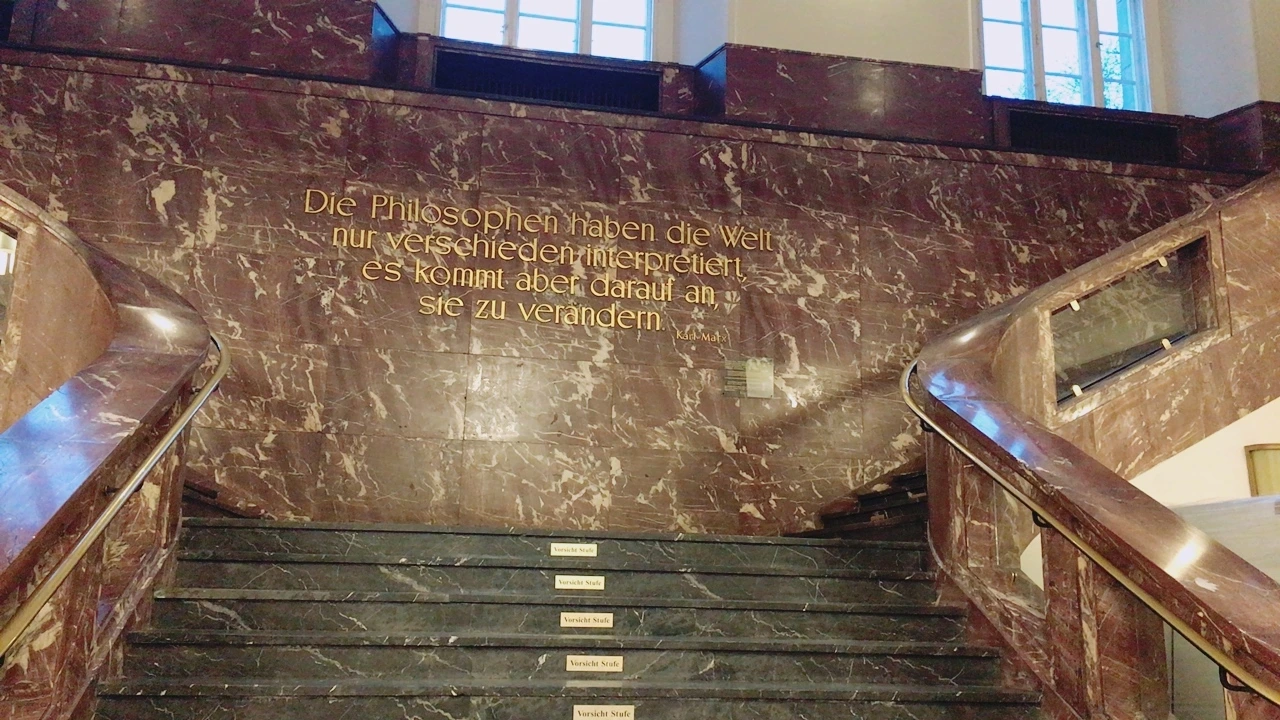 1810년에 세워져 200년이 넘는 역사를 자랑하는 베를린 훔볼트 대학교는 아인슈타인, 루카치, 헤겔, 쇼펜하우어 등 세계적인 학자들을 졸업생 또는 교수로 배출한 대학이다. 10년 전 처음 이곳에 왔을 때, 혼자 보고 감격했던 막스의 문구는 여전히 그대로였다.