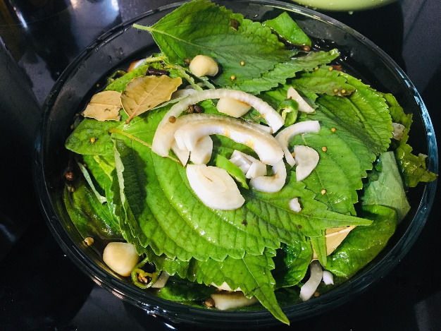 그래도 부지런히 음식을 해 먹는 일은 생각보다 쉽지 않다. 특히 호박잎, 깻잎, 콩잎 같은 아이들은 눈 깜짝할 새에 색이 변하고 말아서 더욱 부지런을 떨어야 한다. 호박잎은 데쳐서 쌈으로, 깻잎과 콩잎은 간장 베이스 양념장에 재워 두고 장아찌로 먹는다. 장아찌는 두고두고 먹어도 되니 냉장고도 든든하고 버릴 걱정도 없어서 좋다. 말린 차조기잎은 차로 금세 마셨다.