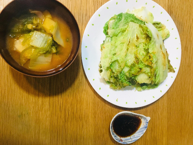 튀김 아니고 배추전이라서 영화 속 아삭바삭한 식감에는 도달하지 못했지만... 겨울을 이겨낸 배추의 달코롬한 맛이 너무 맛있었다. 같은 배추를 넣은 배추된장국과 같이 먹으니 금상첨화. 다른 음식, 반찬 없이 저 둘로 한 끼 뚝딱했다.