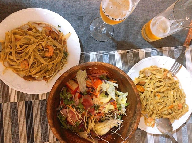 친구가 만들어서 보내준 깻잎 페스토는 고소하고 향기로웠다. 빵에도 발라먹고, 깻잎페스토 파스타도 만들어 먹고. 면만 잘 삶고 야채와 새우 등 넣고 싶은 재료 볶고 페스토 듬뿍 넣으면 끝! 사실 페스토 만드는 게 어려운 건데, 친구가 만들어 준 덕에 간편히 맛난 한 끼를 할 수 있었다.