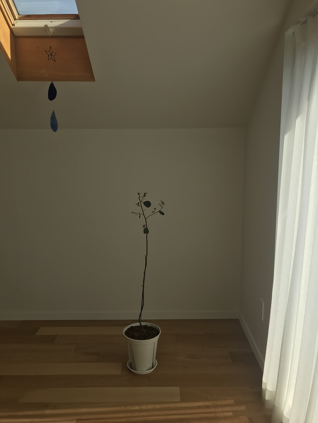 레몬과 함께 온건 폴리안이었다. 키가 큰 외목대를 찾았는데 겨울이라 폴리안이 잘 없었다. 대품 폴리안이 있긴 했지만 다른 종류의 유칼립투스를 몇 번 죽여서 자신이 없었다. 폴리안은 유칼립투스의 종류 중 하나이다. 그나마 키우기 쉽다고 알려져 있다. 완전한 일자의 외목대는 아니지만 가성비 괜찮은 녀석으로 들였다. 당시 16,000원이었다. 너무 산만해서 생장점을 잘랐다. 지저분한 가지도 잘라주었다. 환기가 생명인 폴리안이라 겨울에는 선풍기까지 틀어주며 키웠다. 성장은 당연히 멈춤이었다. 남아 있는 잎들 몇 개가 색이 변했다. 과습이거나 춥거나 둘 중 하나였다. 토분에 심어 주었는데 속성 식물이란 이야기에 분갈이를 다시 해 주었다. 낮에는 테라스에 내놔주고 해지기 전에 옥탑 안으로 들여준다. 지극정성이다 -_- 그 정성을 알아주는지 요즘은 새순이 나오고 있다. 정말 하루가 다르게 큰다. 참 예쁘고 고맙다.