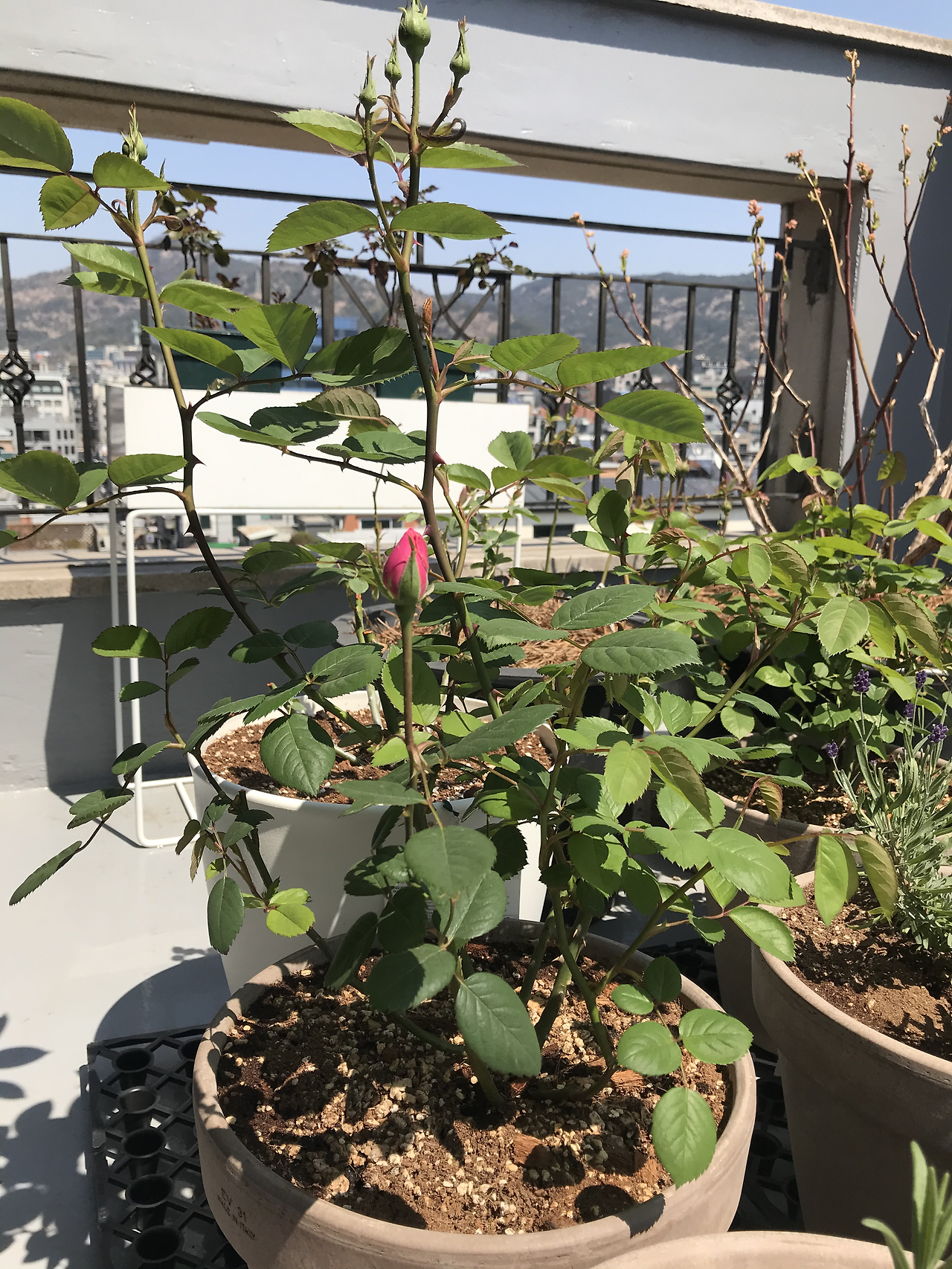장미들은 새순을 퐁퐁 냈다. 꽃봉도 십수개가 올라왔다. 저게 꽃이 될까?싶었던 꽃봉은 이제 막 피려고 준비를 하고 있다. 나만 아는 변화다.