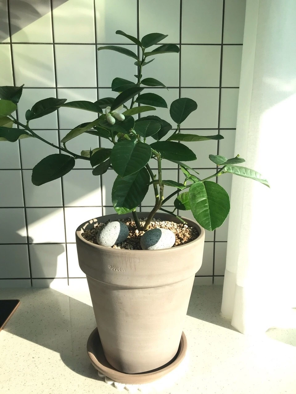올리브를 들이러 갔던 양재동에서 레몬나무를 들였다. 우리 집에 처음 들어온 식구였다. 꽃봉이 두 개 있던 레몬나무는 집에 온 다음 주 꽃을 피웠다. 해가 잘 드는 주방에 놨는데 근처에만 가도 향이 진동했다. 상큼한 시트러스 향이었다. 한겨울인 1월에도 실내에서 꽃을 피우다니 신기했다. 열매도 열렸다.