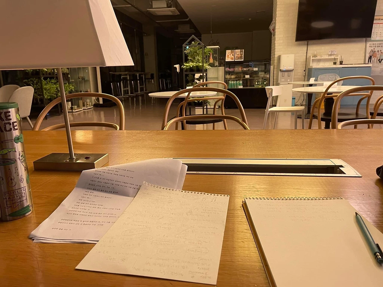학생들 틈에 자리를 잡고 노트북을 두드렸다.