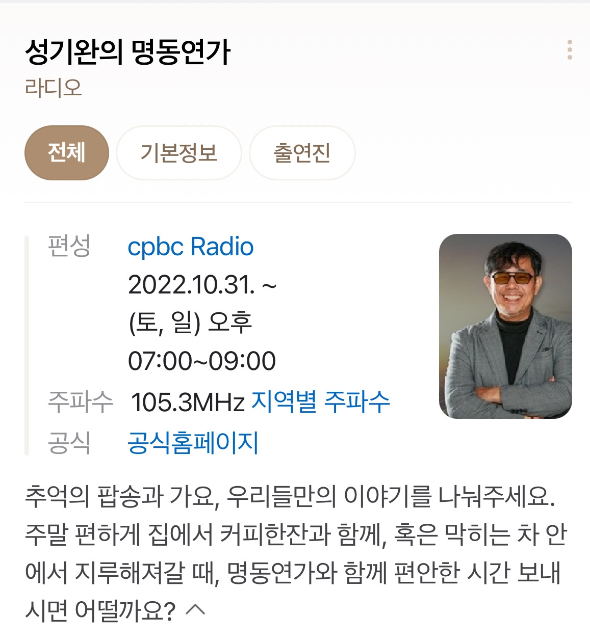 토. 일 저녁 7-9시/ 성기완의 명동연가!