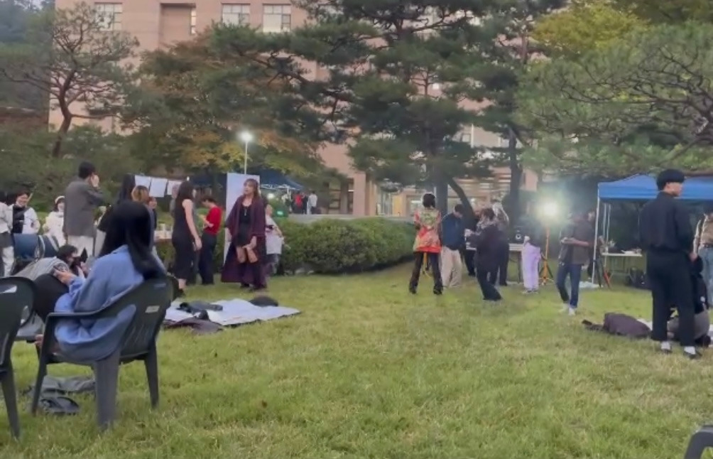 창조관 앞의 잔디마당을 채운 학생들이
