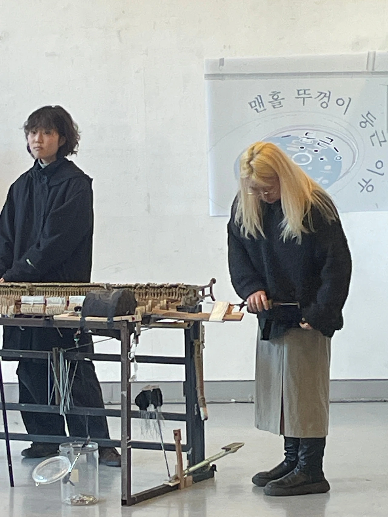 새로운 악기를 만들어 즉흥 연주중인