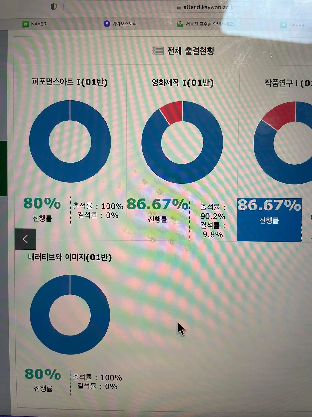 메인에 그날 들어야 할 강의와 출결 안내가 뜬다.