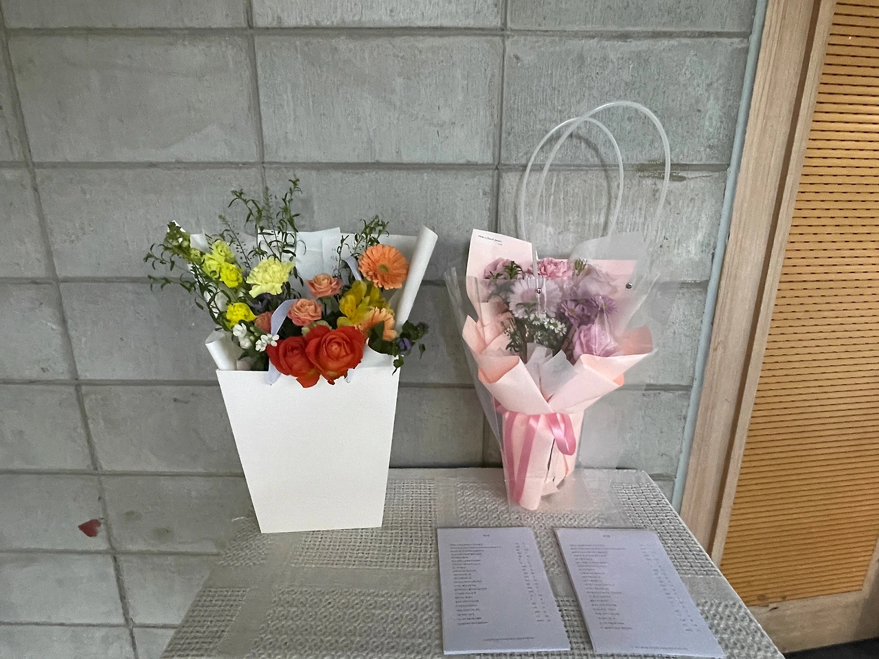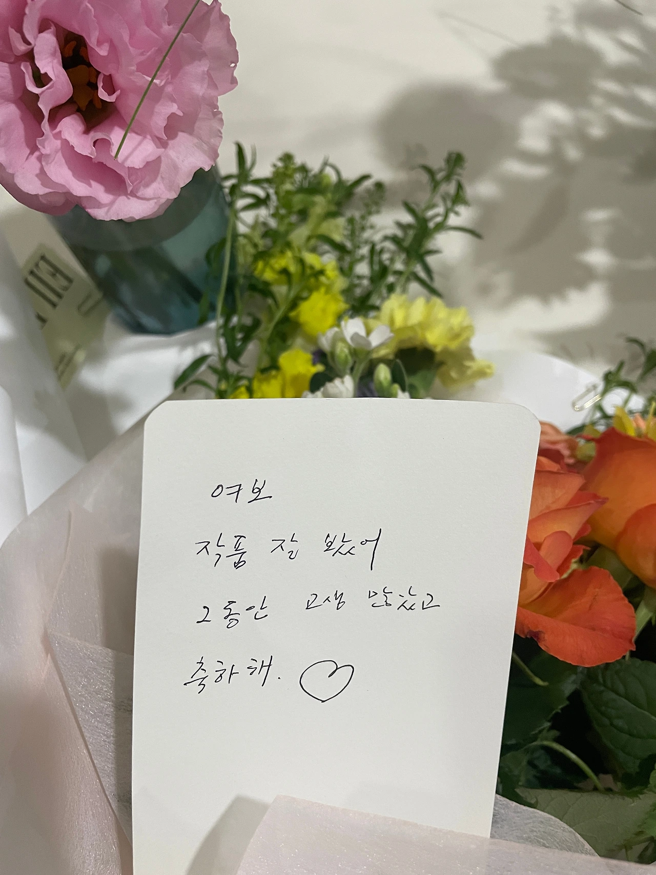 받은 꽃다발들.. 남편과 선배 지은이^^