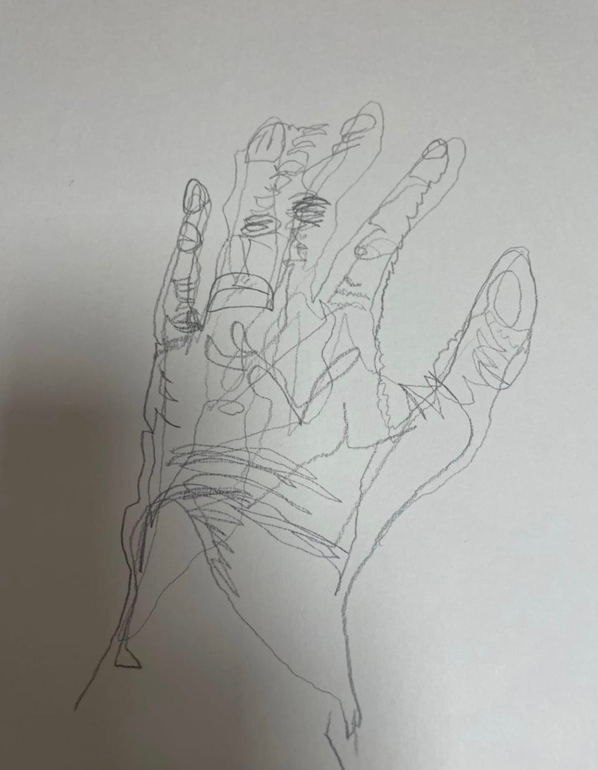 한쪽 손만 보며 드로잉을 하기 시작했다.