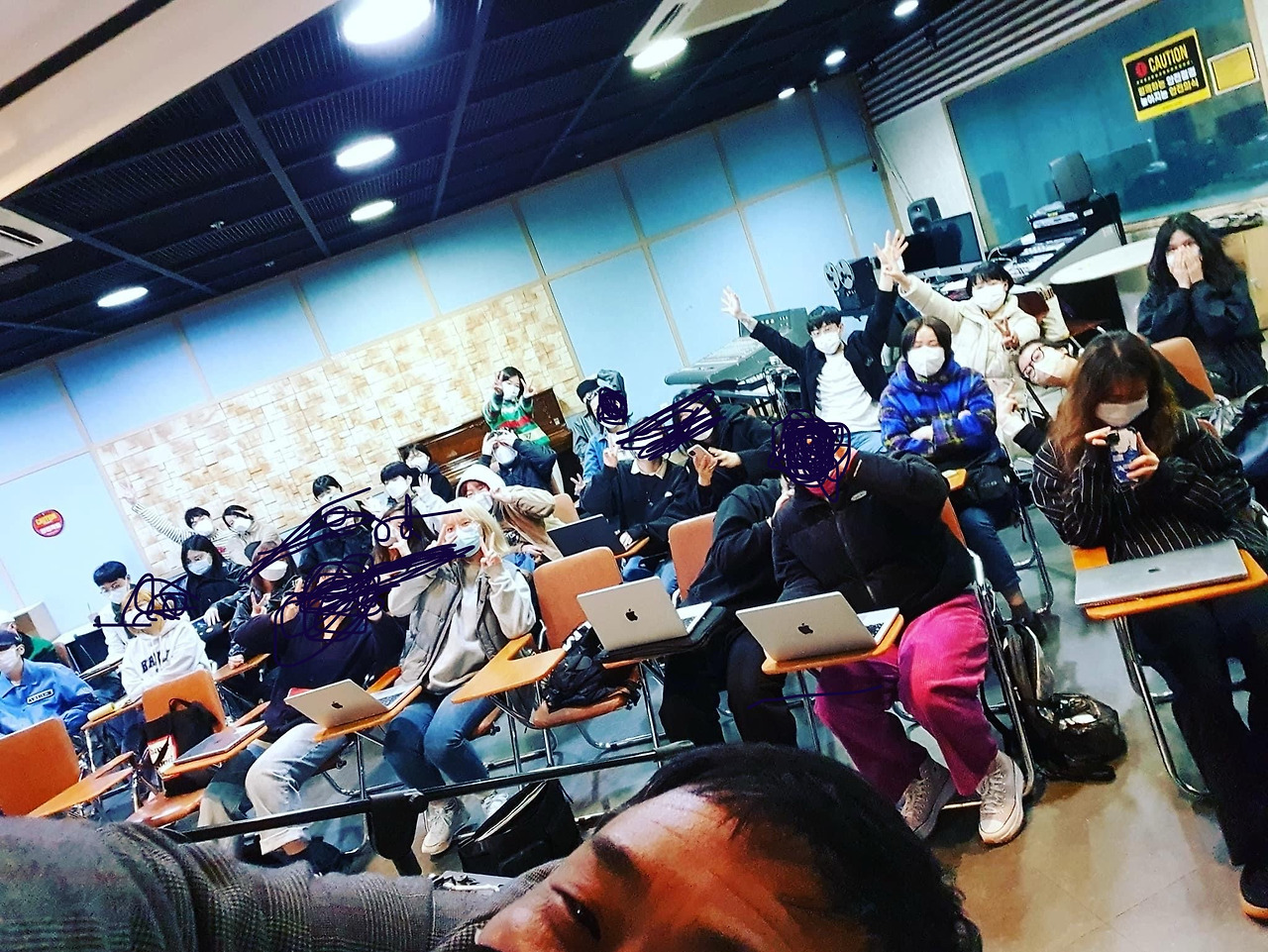 첫 대면 수업 기념 셀카를 찍으시는 교수님/