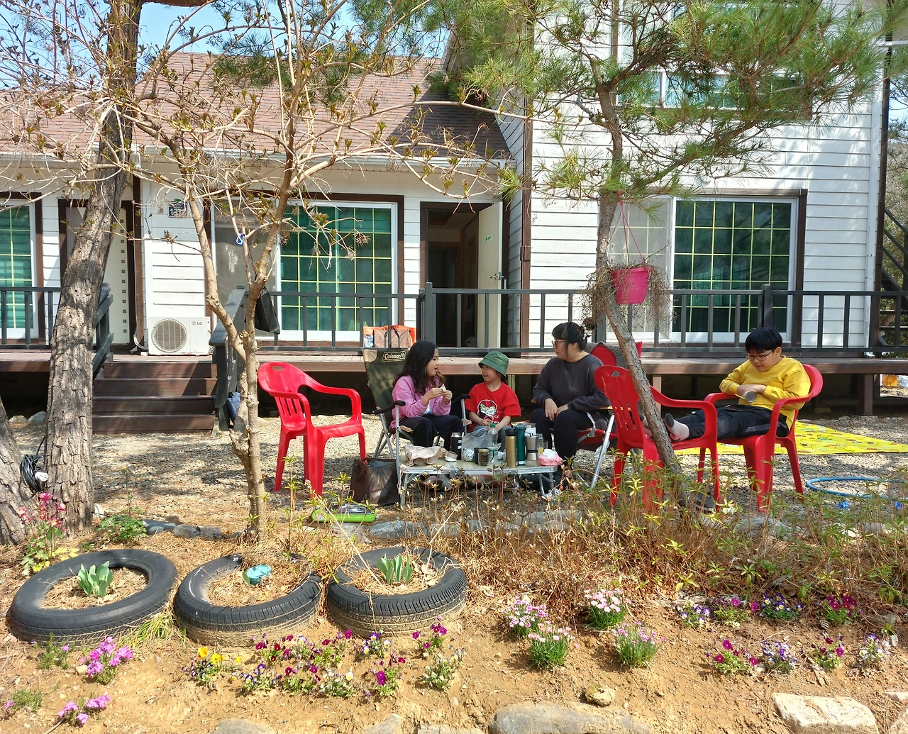 우리의 이야기 꽃이 피어나면서 햇살도 따사로웠다. 햇살을 피해 캠핑의자를 이리 저리 움직이며 앉았다. 낮에는 여름이 다가오는 날씨였다. 햇살을 듬뿍 맞아 비타민 D가 생성 잘 되는 하루 였다. 이야기 꽃을 피우다 보니 슬슬 배가 고프기 시작하였다. 싸들고 온 고기, 햄, 새우, 김치, 밥 등등 먹거리들로 풍성한 오늘이다. 사장님께 양해를 구하고 방안에서 환기를 시키며 팬에 고기, 햄과 새우를 구웠다. 밥상이 차려지고 쌈채소에 쌈을 싸서 우적우적 배의 허기를 채운다. 아이들도 배가 고팠는지 잘도 먹는다. 새우까는 짝꿍에게 고기쌈을 한줌 싸주며 서로의 정이 오고 간다. 맛있어서 아구가 아플 정도로 빠르게 음식물을 씹어 배를 채운다. 맛있는 밥상 한끼가 또 차려지고 먹고 있다. 너무 맛있다를 연발하며 먹고 또 먹고 배가 터질듯이 먹고 나서야 속도가 느려지는 먹부림을 또 한다.