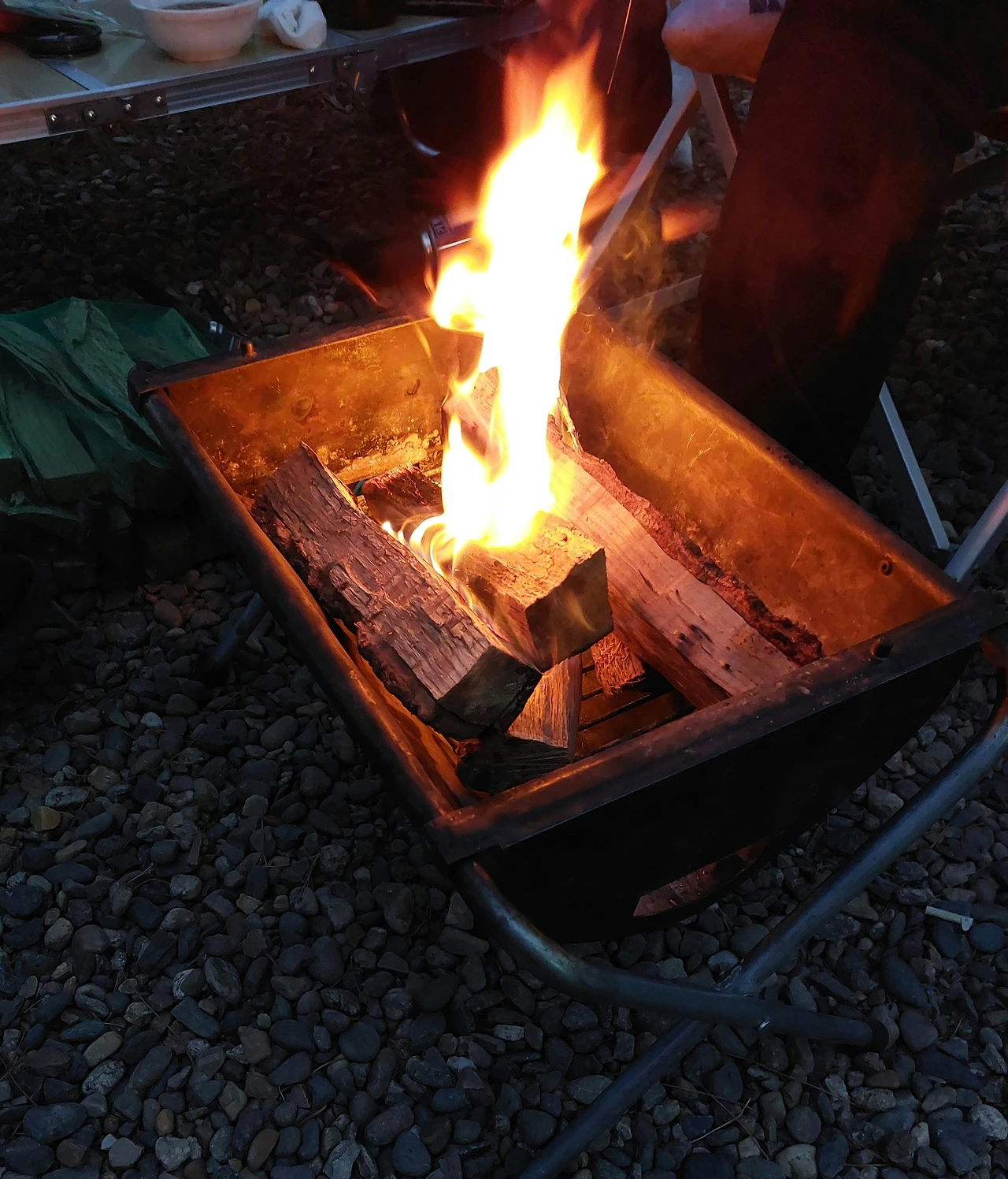 두둑히 먹고 정리하니 벌써 저녁이 가까워진다. 조금 어둑해 졌을 때 짝꿍은 장작을 넣어 불멍할 수 있도록 모닥불을 피워준다. 싸늘했던 공기가 모닥불로 인해 따스해 진다. 불멍이 시작되었다. 짝꿍과 나는 또 다른 이야기 보따리를 풀어낸다. 아이의 친구들 이야기를 하며 서로의 의견도 묻고 내 생각도 정리해 본다. 요즘 나의 근황도 이야기 해본다. 하루를 글쓰며, 필사하며, 보내고 있다는 나에게 응원해 주는 친구이다. 공모전도 응모해 보고 싶다는 말에 더없이 환호를 보내준다. 요즘 내가 즐기며 할 수 있는 일이 생겨 너무 좋다고 하였다. 외로움도 덜어준다는 얘기도 덧붙였다. 이런 저런 대화를 하고, 옥수수와 떡도 모닥불에 구워먹고 어느 새 밤이 되어 간다. 하루가 길었지만 알차게 논 하루 였다.