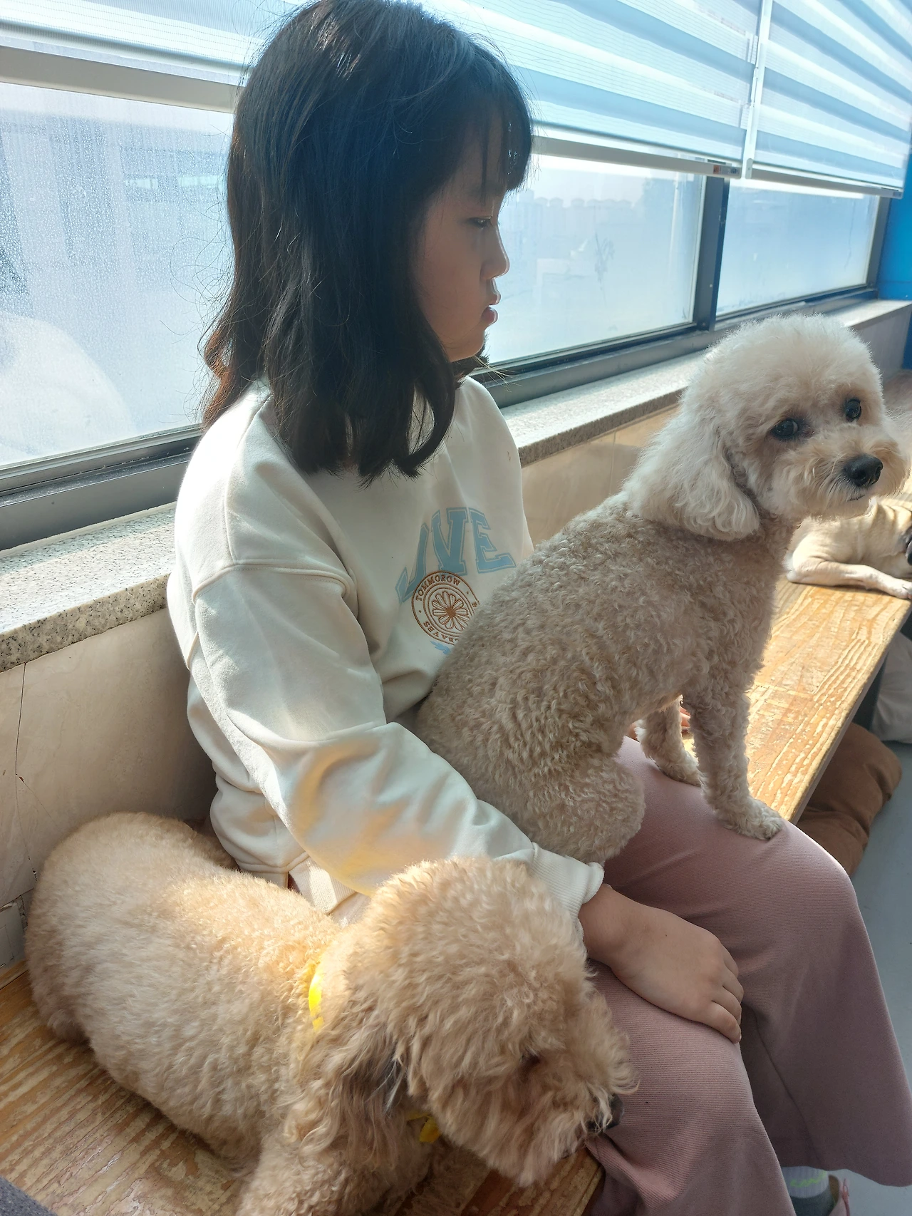 그래서 강아지를 사주는 대신 딸아이를 애견까페에 데리고 갔다.