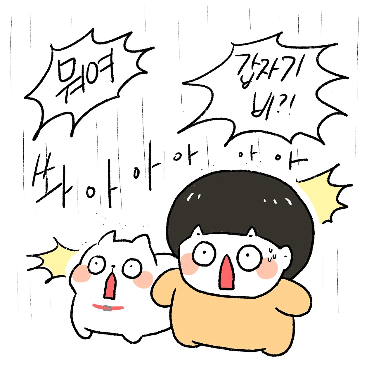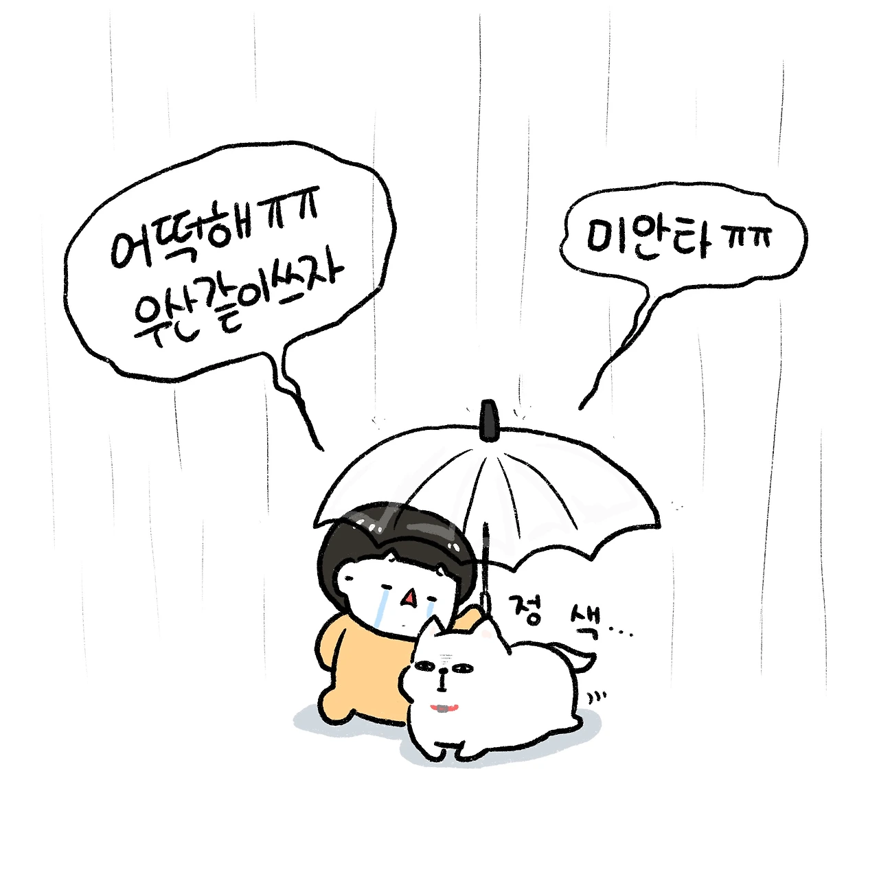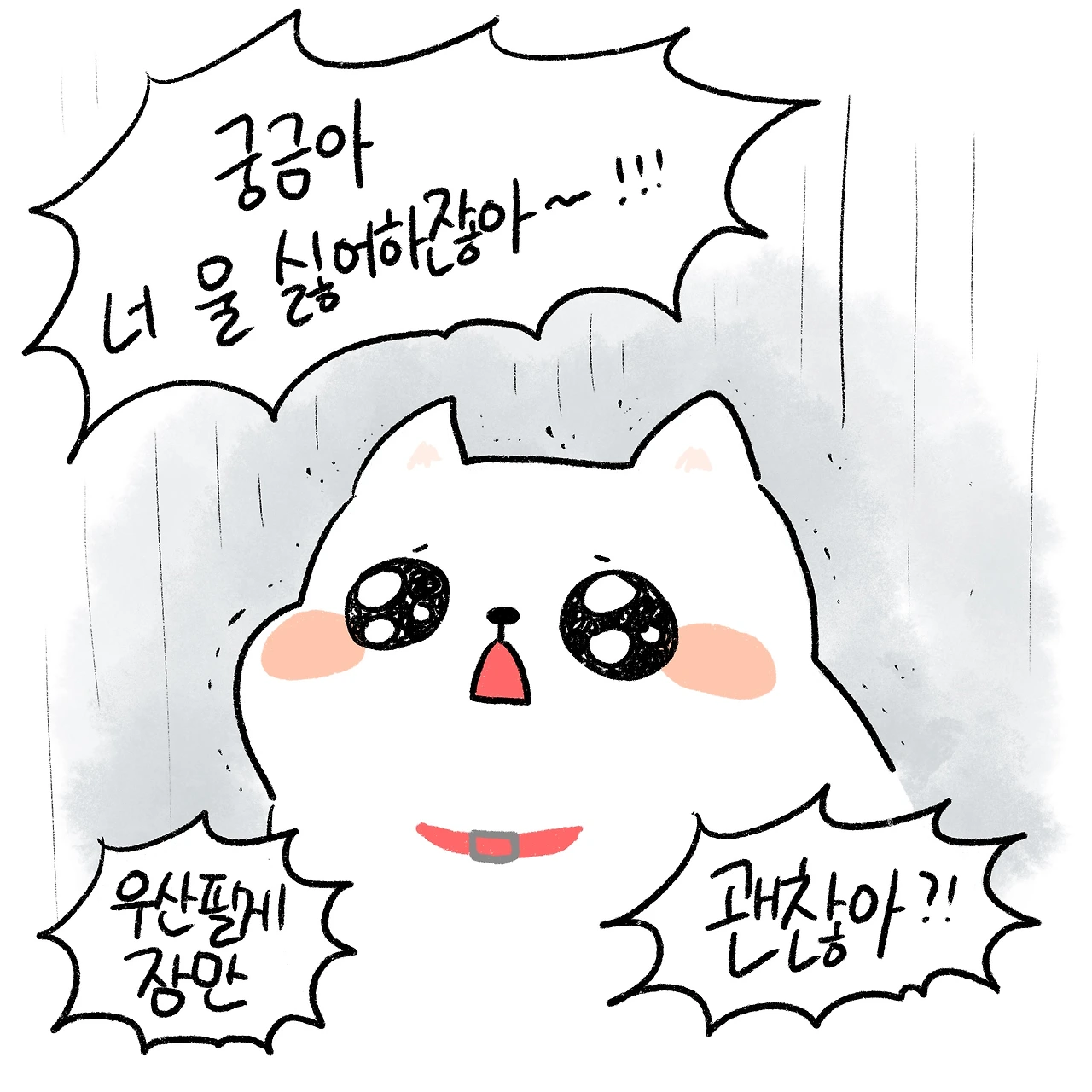 성질나버린 궁금 더 독.. 결국 처마 밑에서 비 피했습니다..