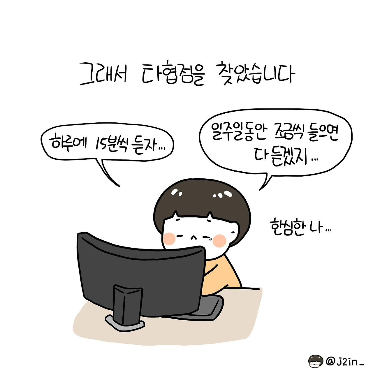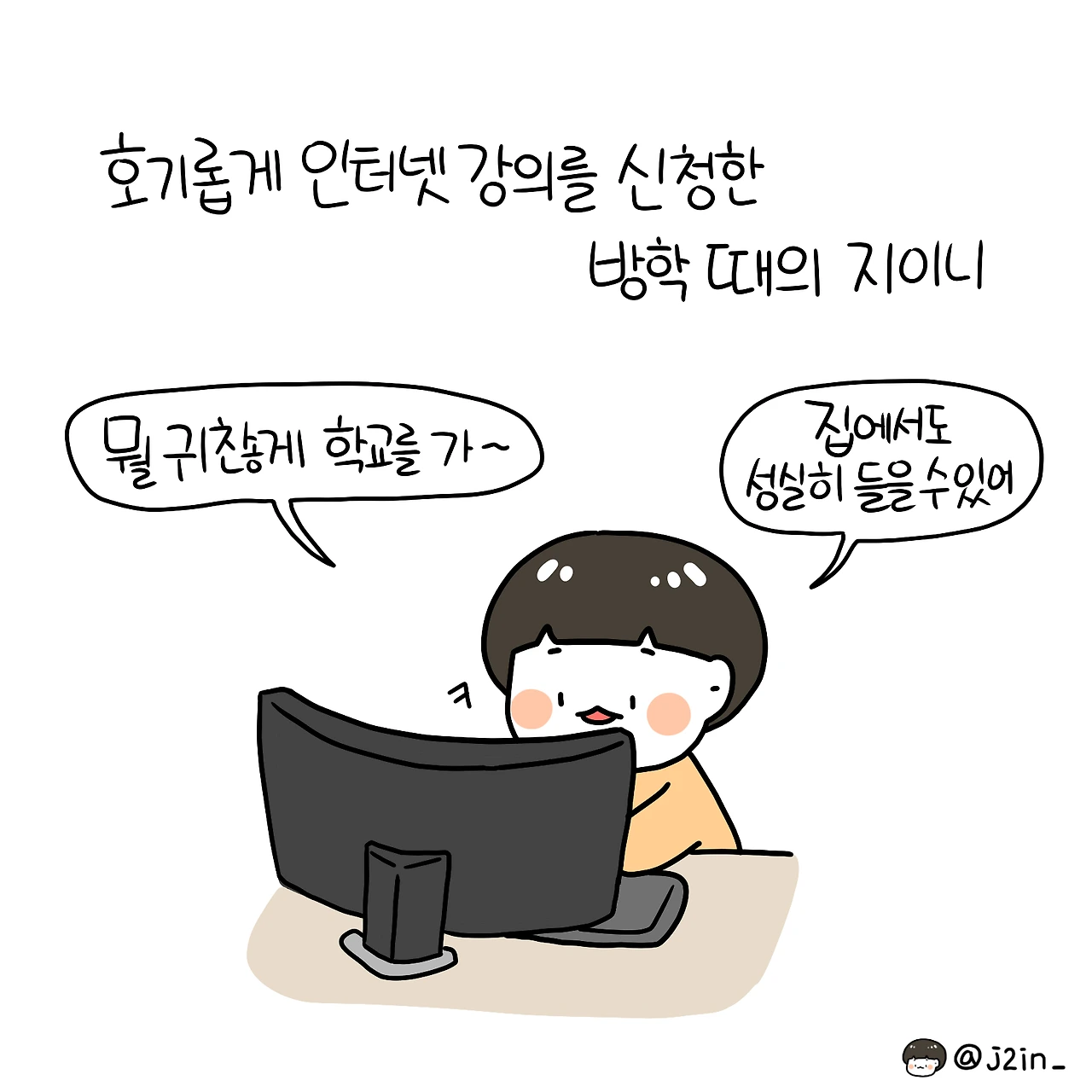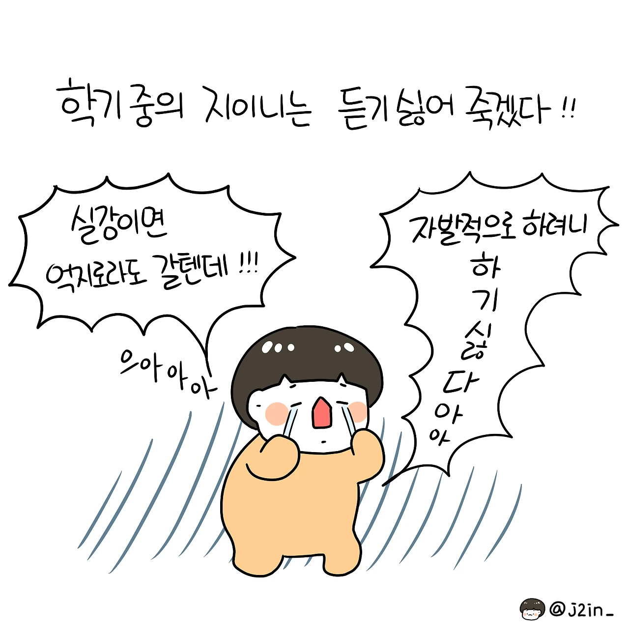 인터넷 강의는 왜 이렇게 얌전히 앉아서 듣기 힘든지 모르겠다. 수강신청 기간으로 돌아갈 수 있다면 인강 신청 안 할 것 같다. 내 자신을 너무 믿었다.