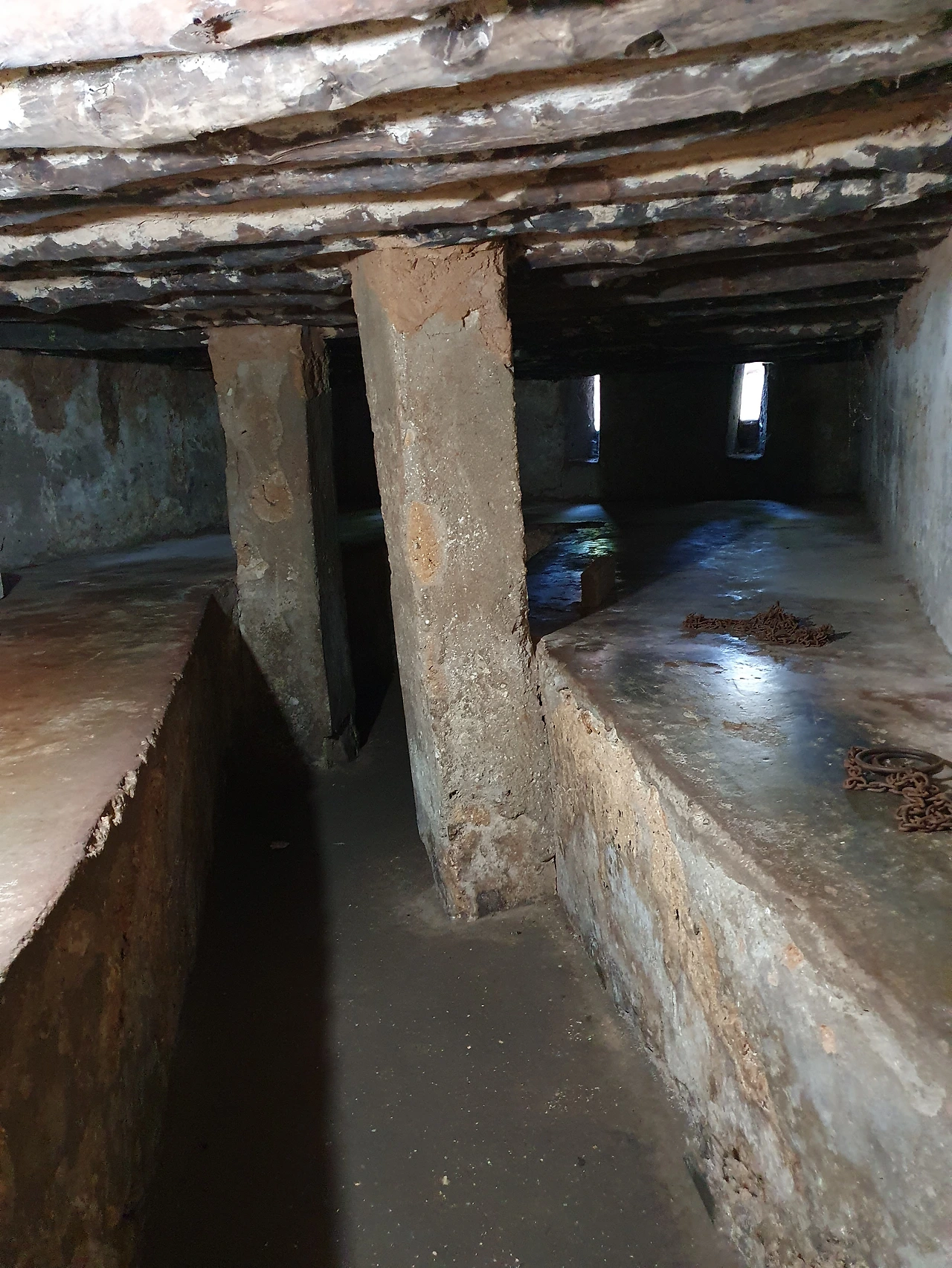 포르투갈의 노예무역상들은 아프리카 내륙 각지에서 데려온 이들을 먹을 것 하나 제공하지 않고 지하에 이틀 동안 가둬둔다. 열악한 상황을 견딜 수 있는 체력에 대한 테스트였다고 한다. 지금은 관광객을 위해 실내등이 달려있지만 노예무역이 이루어지던 당시에는 오로지 벽에 난 작은 틈에서 비춰지는 빛이 전부였다. 그리고 썰물때가 되면 바닥에 바딧물이 차고 화장실을 따로 갖추고 있을 리 없는 지하실은 오물의 악취가 가득했을 것이다. 위생상태가 좋지 않아 각종 질병으로 수많은 이들이 노예로 팔려가기도 전 사망했다.