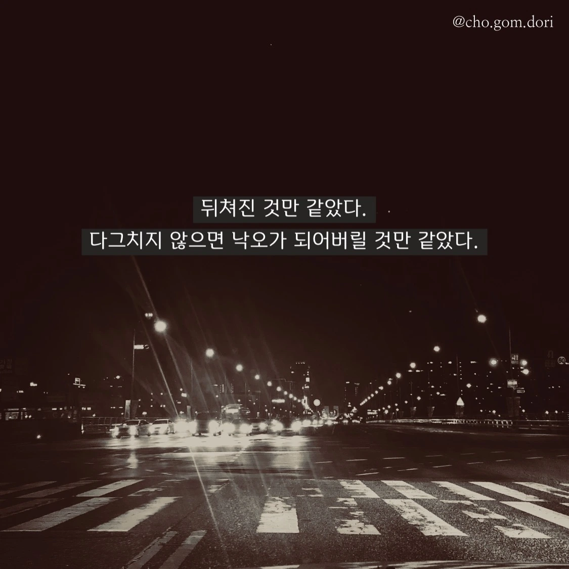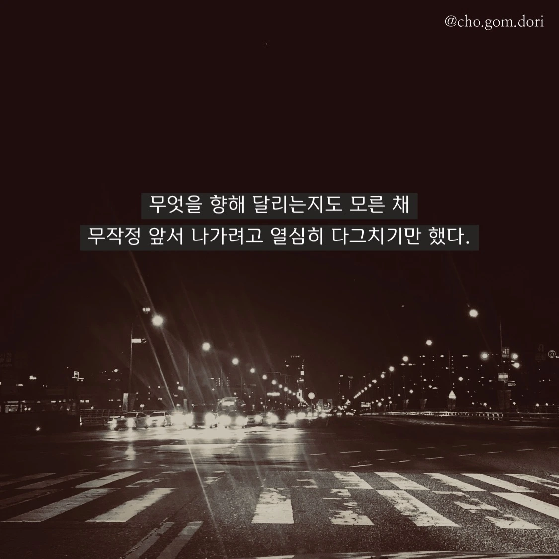 그렇게 무엇이 중요한지 왜 한발을 앞으로 내딛는지 알지도 못한채 앞으로 나아가려고만 했다.