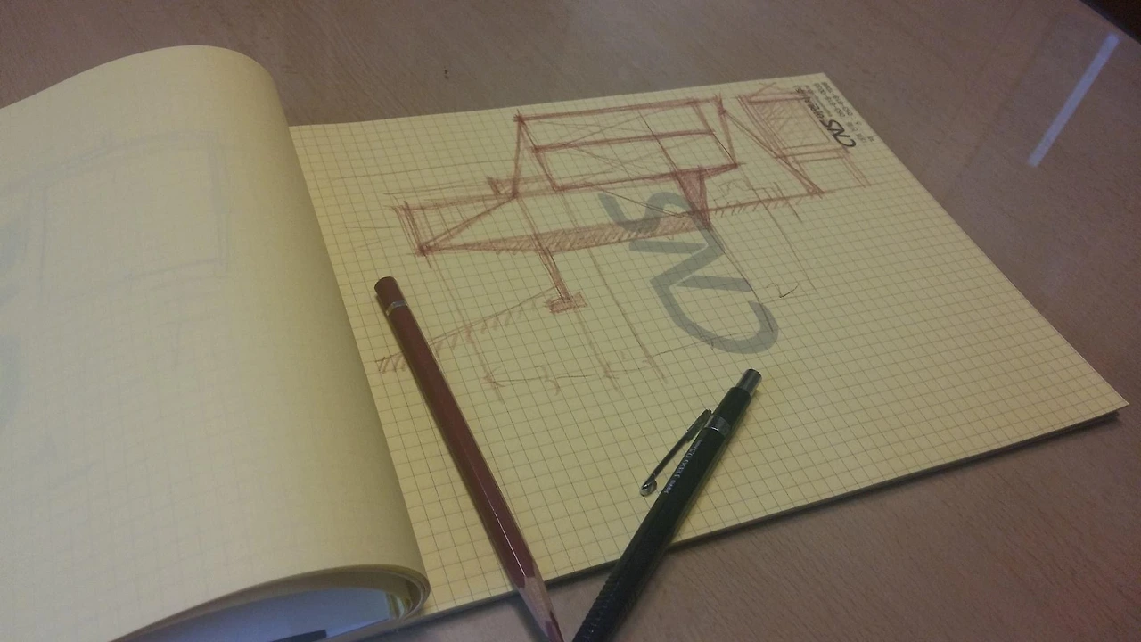 아무튼, 전자 기판의 회로와 같은 망상의 사선이 거리의 대세가 되었음은 별로 놀랄 일이 못된다. 나 또한 예외일 수 없어, 구조적인 tension과 관계가 있든 없든 매일 사선을 그어댄다. 더 쉽고, 더 빠르고, 더 자극적이니 하물며 실패의 확률도 줄어 드니 매우 합리적이며 현실적인 적응이라고나 할까. 오늘도 스케치의 초기부터 여지없이 사선으로 치닫는다.