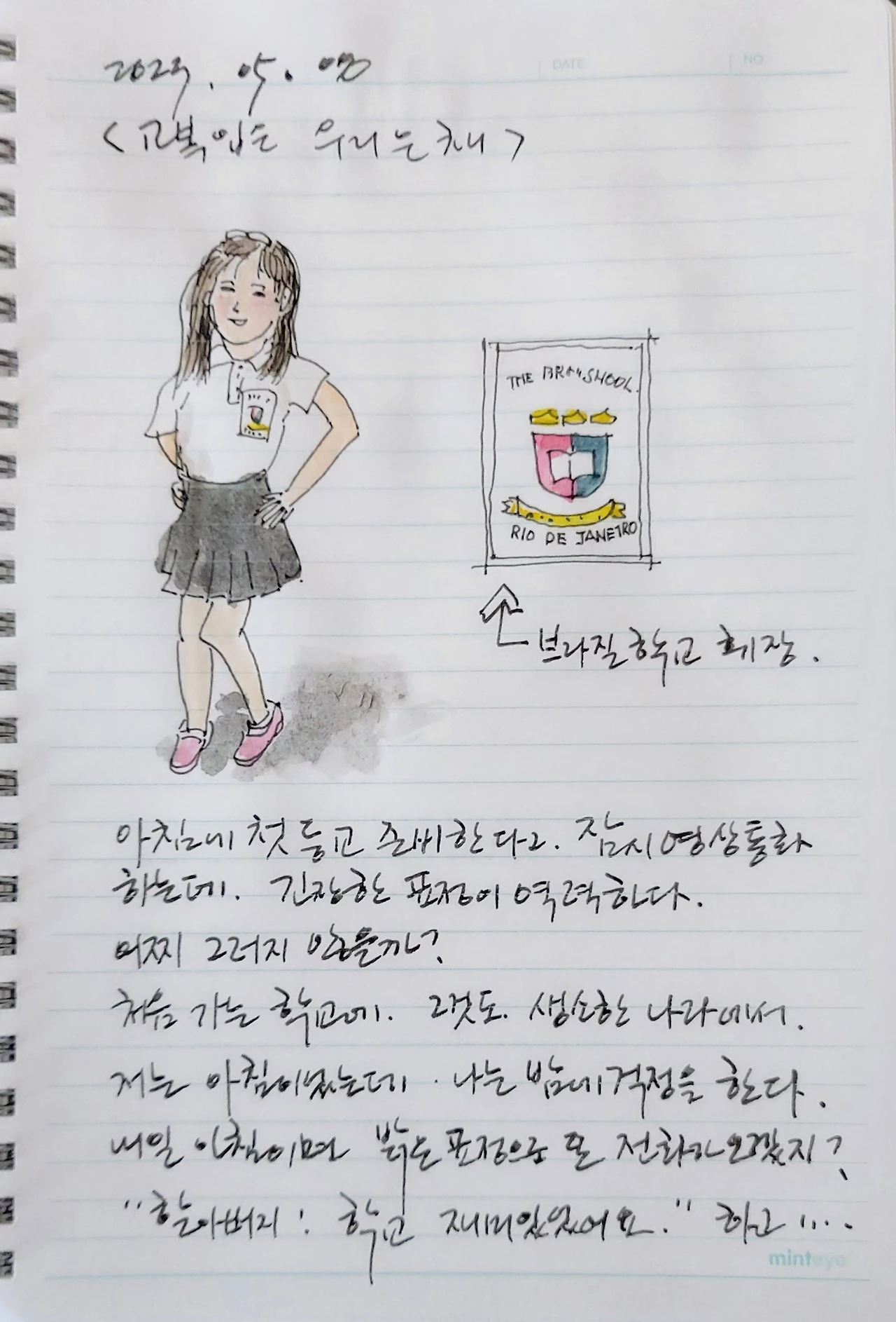 아침에 첫 등교 한다고, 잠시 영상통화 하였는데. 긴장한 표정이 역력하다. 어찌 그러지 않을까? 처음 가는 학교에. 그것도 생소한 나라에서….