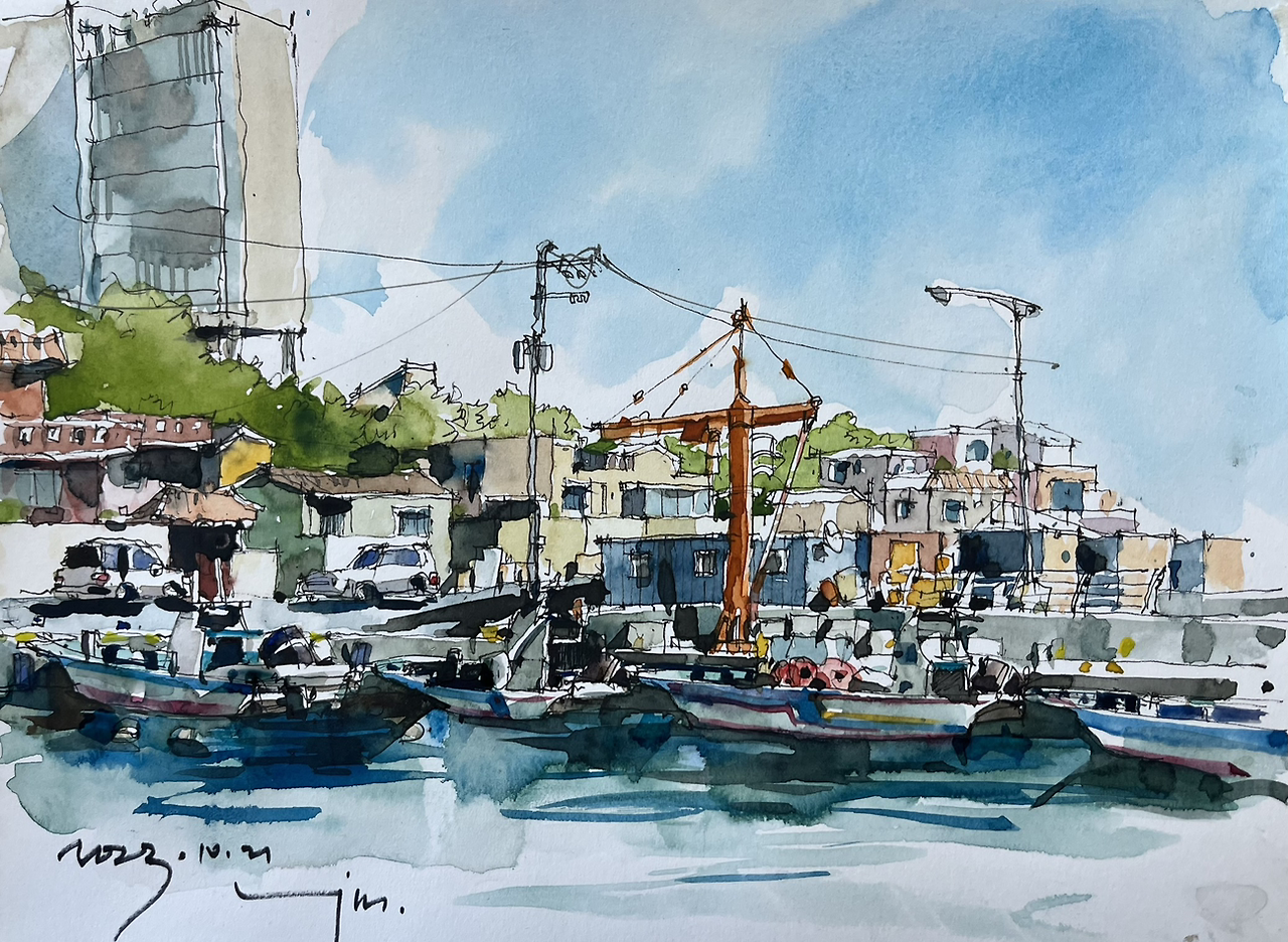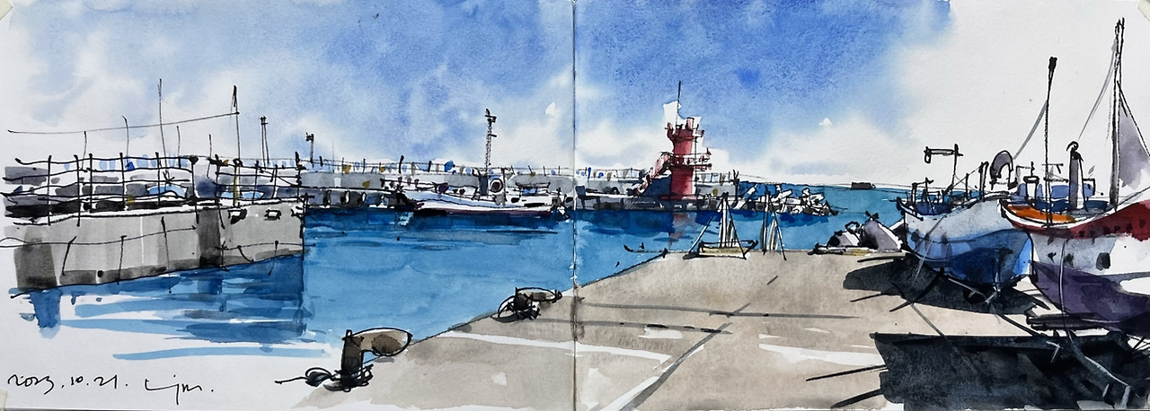 어느새 물색 짙어지고. 나는 비로소 입고 온 옷이 얇음은 알아 차린다. 계절이 바뀌는 시간의 바다. 어부는 어망 속 물고기를 셈하고. 나는 그것을 그리려 한다.