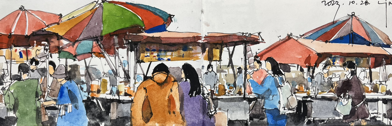 ‘날이 좋아서’ ’모든 날이 좋았다.’ ‘너와 함께 한 시간, 모두 눈부셨다.‘ 나도 모르게 입 밖으로 나온 말. 생각해 보니 드라마 도깨비에 나오는 대사였다. 시장 뿐만 아니라 거리에 사람이 참 많으니 날이 좋은 것이다.