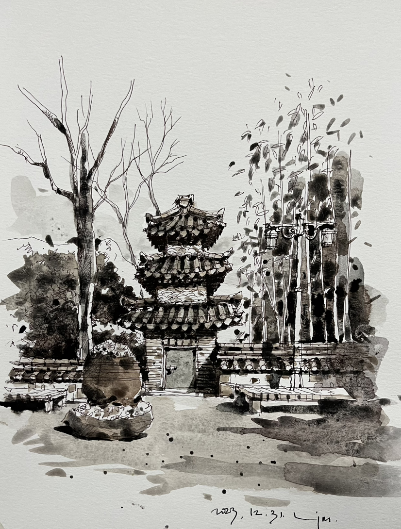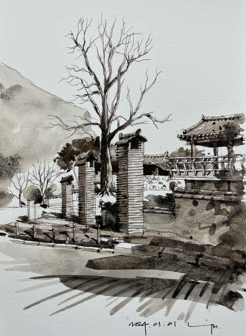 올해의 첫 그림이 이렇게 시작 된다. 지난해 마지막 그림 또한 범어사 굴뚝의 그림이었다.