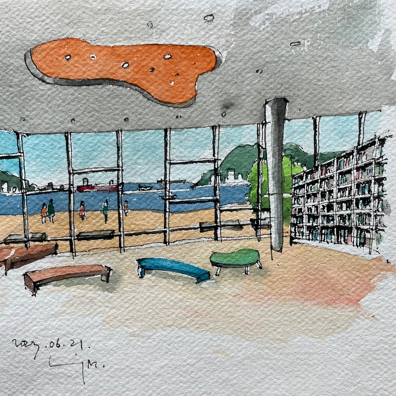 바다가 보이는 해양박물관 도서관에서 아이들이 앉아서 책을 본다. 바닥은 앞마당과 높이가 같고, 해안선 너머로 보이는 물의 높이와는 불과 1m 남짓. 그 마룻바닥에서 눕기도 하고 뒹굴기도 하며 책을 읽는다. 그러한 아이들의 모습이 물고기나 돌고래의 유영과 닮았다면 지나친 관찰일까? 하지만 낮은 곳이 사람을 편안하게 만든다는 것은 사실이다.
