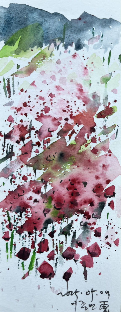 꽃에 대하여 늘 생각했듯이, 이 꽃 또한 저 멀리 어느 별에서 온 것임에 틀림없다. 양귀비 별. 그 선홍색 별은 한없이 여리고 완벽한 모양을 한 별일테다. 꽃을 보러 간 그날 하필이면 비가 내렸다. 얼른 스케치북을 꺼낸다. 비 오는 날의 수채화. 습기에 젖은 붉은 양귀비꽃 바라본다. 오래된 일. 물기에 젖은 어느 여인의 머리카락 촉감. 색이 물에 핏물처럼 풀어지고, 나는 오래된 기억 속의 별로 향한다.