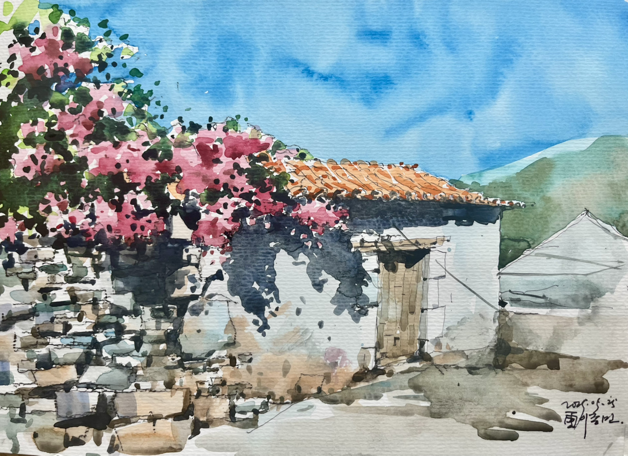 부겐베리아 꽃이 흐드러진 폐가. 붉은색과 초록이 폐가의 벽에서 반짝인다. 빛은 사물의 존재를 백일하에 드러낸다. 하지만, 기실 그 사물의 형체를 증명하는 것은 빛이 만들어 낸 그림자이다. 그림에서 그것은, 때론 은은하게, 때론 깊게. 하지만, 늘 최종적으로 사물의 존재에 관여한다.