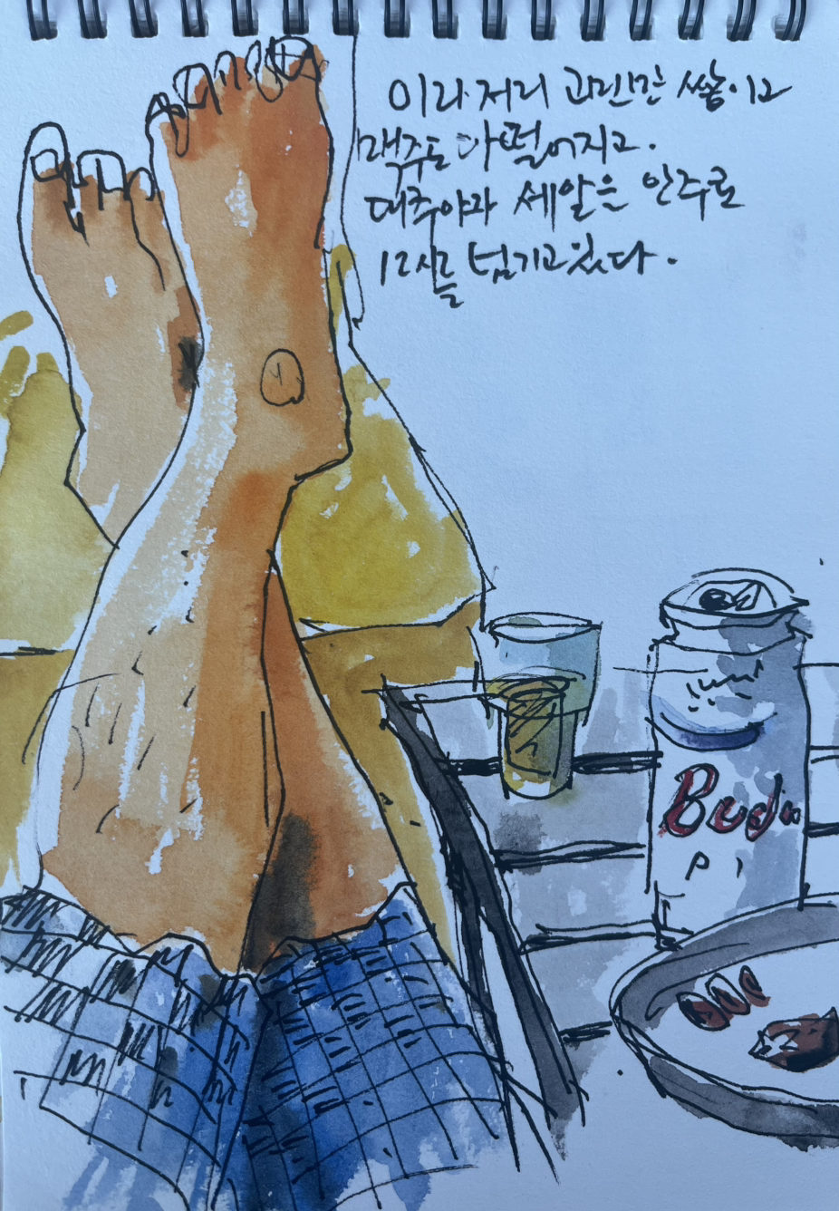 아무튼 그날 저녁, 나는 좀체 잠을 이룰수 없었고. 다만, 낙서 같은 그림으로 약간의 공백을 메우고 있었습니다.