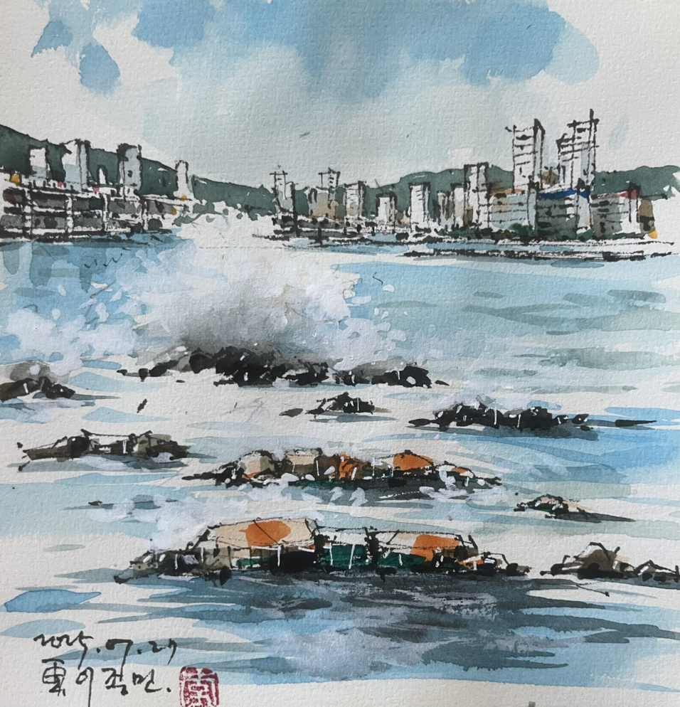 이쪽은 광안리의 끝이고. 저 너머는 남천동, 우리집에 구전되는 말로는 ‘남칭이‘란 곳이다. 이곳과 저곳은 그 옛날부터 넓은 모래 호반의 양쪽 끝이었을게다. 도시의 인공조형물들 속에서, 그나마 불그스레한 바닷속 바위의 흔적이 아직 이쪽에 남아있으니. 나는 옛 기록과 구전된 말 따위를 겨우 유추해 보는 것이다.