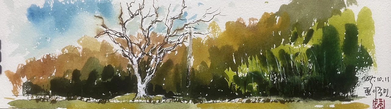 홀로 선 저 나무는. 오래전 이파리가 파랬던 시절부터 몇 번의 가을을 보았을까? 기가 죽지 않은 나무는 여전히 크고. 나무가 보았던 수많은 시간 중의 미미한 지점을 작고 작은 내가 지나간다. / 감은사지 뒷편의 느티나무 고사목