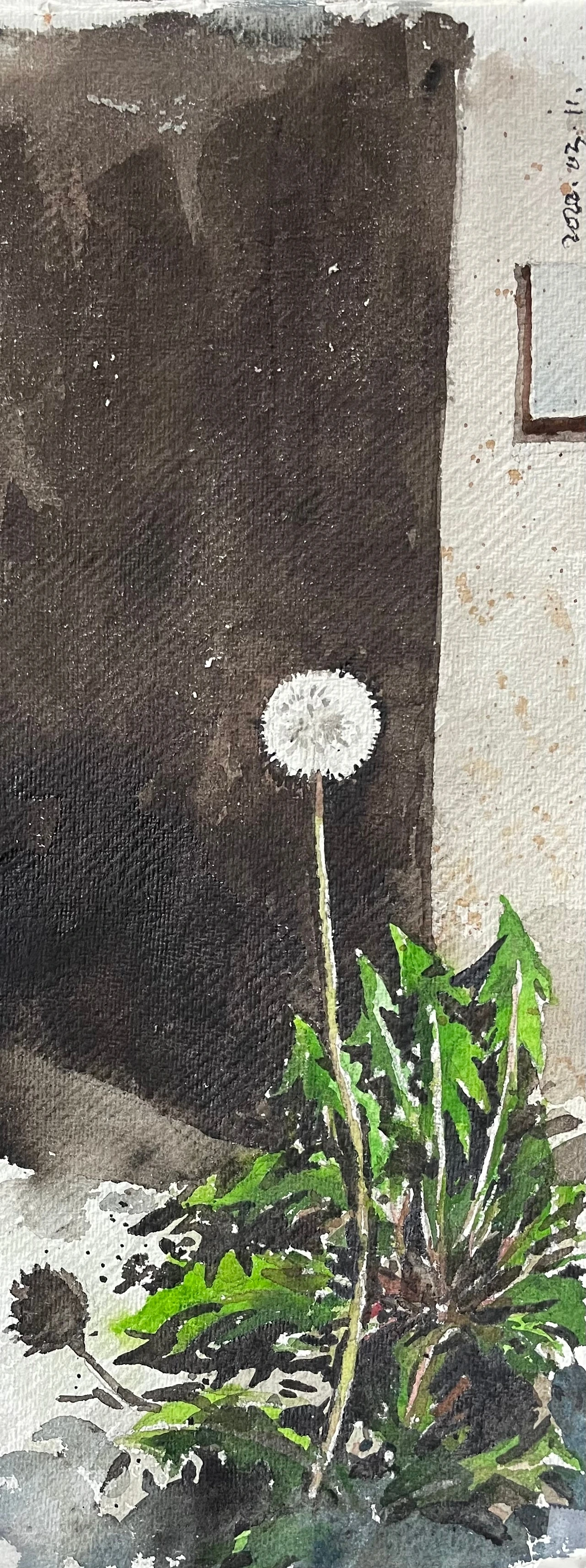 민들레 / 마음이 비어 헐렁할 땐, 차라리 꽃 그림을 그립시다. 민들레, 너는 하필이면 모서리에 섰느냐? 아무래도 바람이 드셀 텐데..... 아니~ 아니야. 내가 미처 몰랐구나. 그래야 빨리 씨를 날린다는 것을. 쓸쓸한 너에게서 배운다. 바람을 향해 외롭게 서는 것의 아름다움을. 그러해야 또 새로이 키워진다는 것을. / 허탈의 강을 건너고 계시는 모든 분께